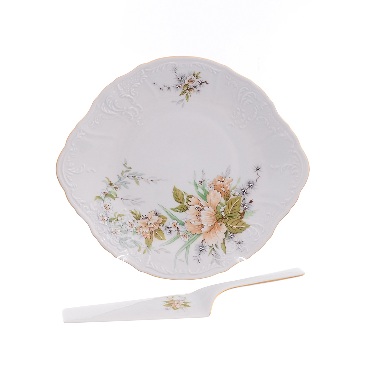 Тарелка для торта с лопаткой Bernadotte зеленый цветок 27 см
