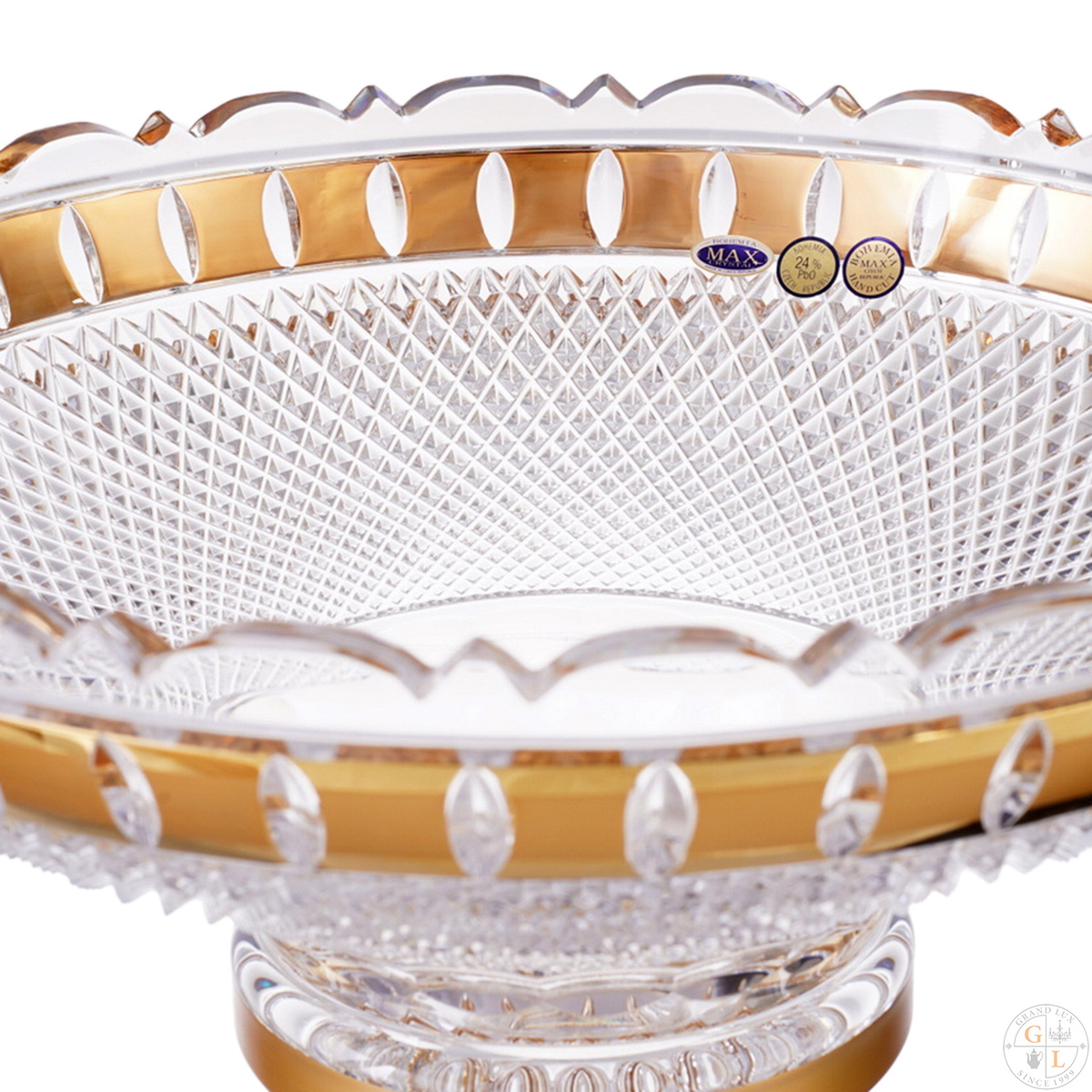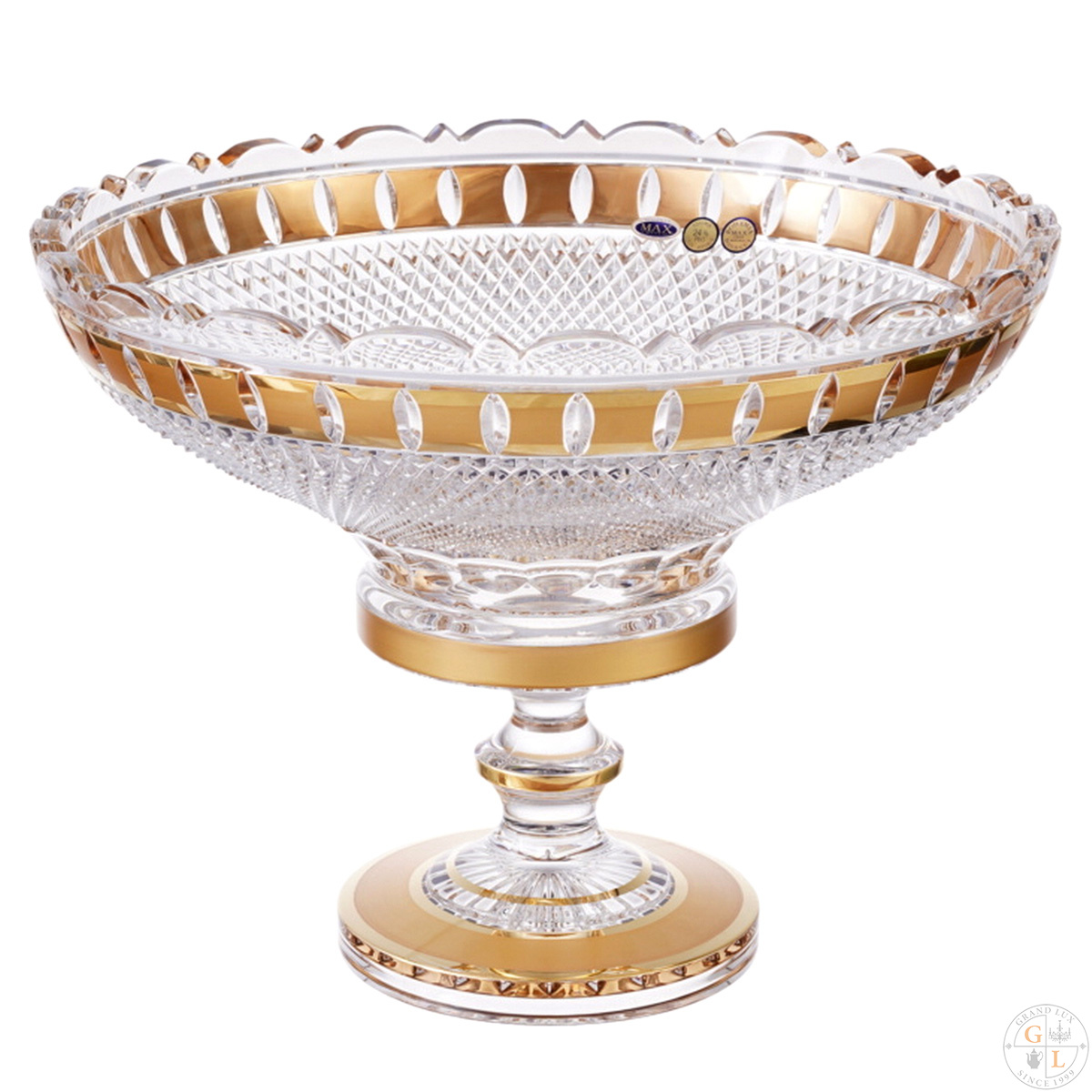 Фруктовница на ножке Bohemia Max Crystal золото филиция 35см