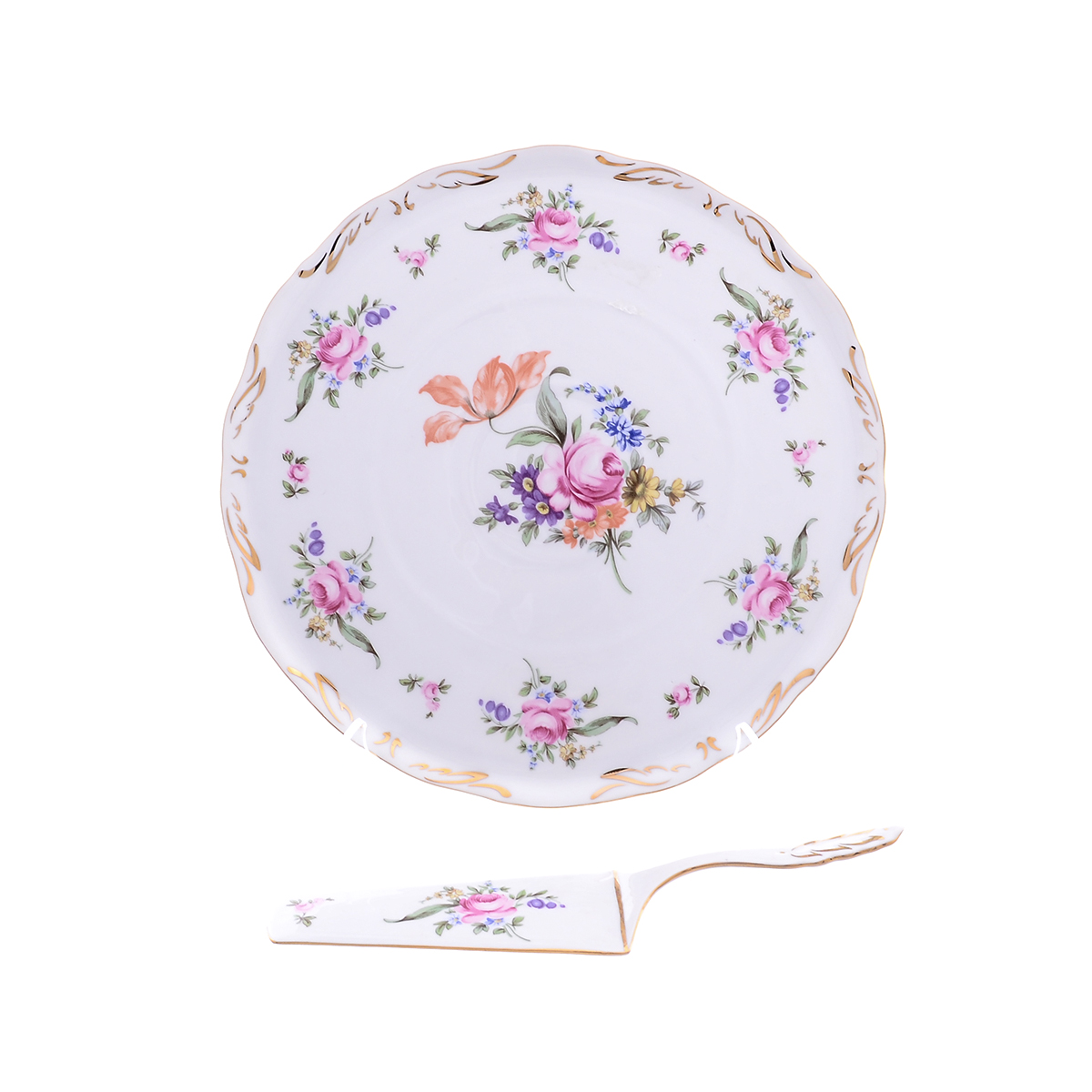 Тарелка для торта 28 см с лопаткой queens crown полевой цветок корона.
