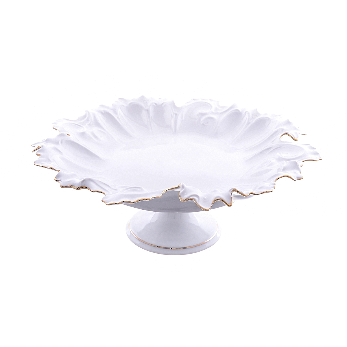 Блюдо круглое на ножке Queens Crown корона белый узор 35 см