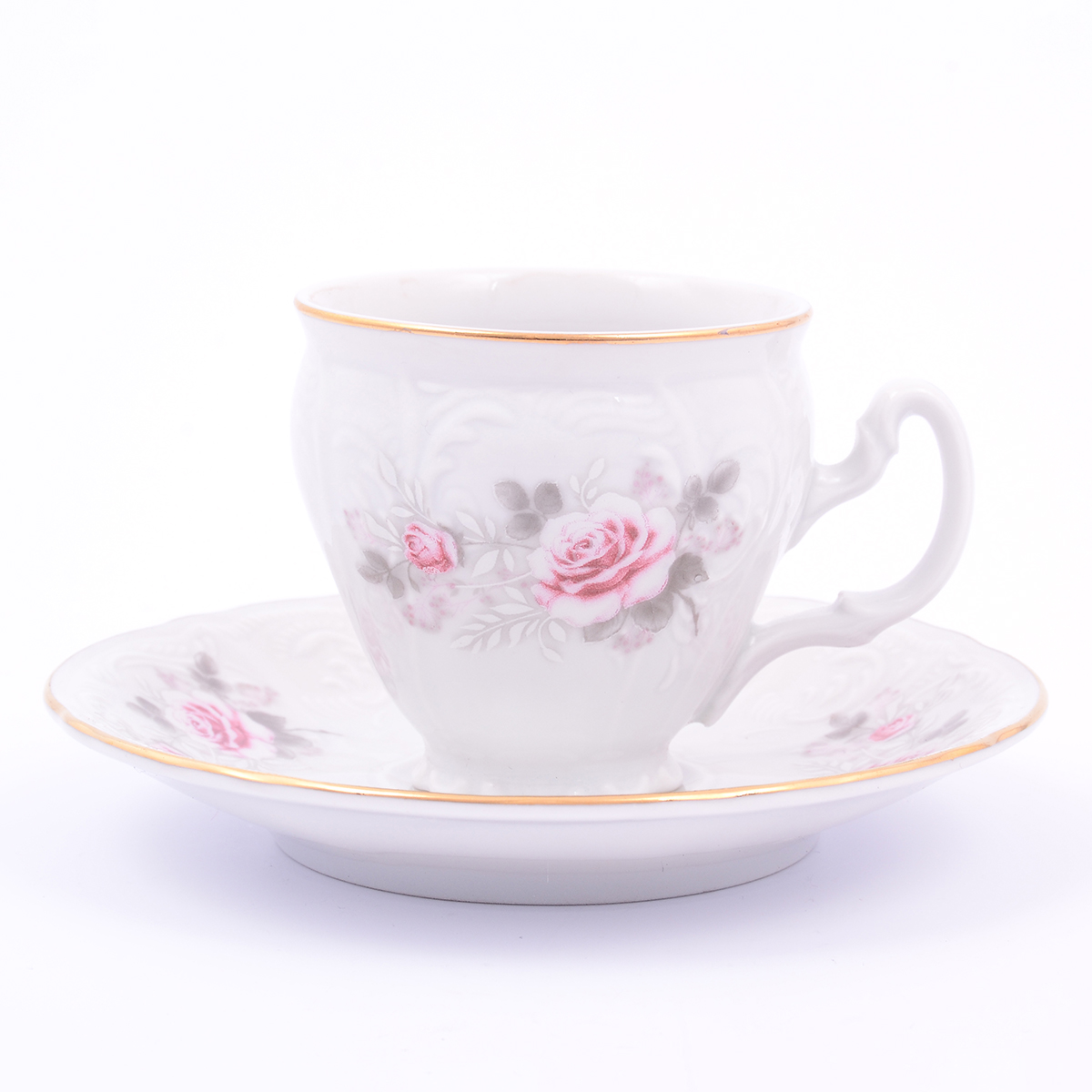 Набор кофейных пар bernadotte серая роза золото 90 мл(6 пар). Тип товара Кофейные пары (Чехия, Фарфор, Bernadotte) Страна происхождения Чехия Материал Фарфор Бренд Bernadotte Серия Серая роза золото Назначение Предмет домашнего обихода из фарфора