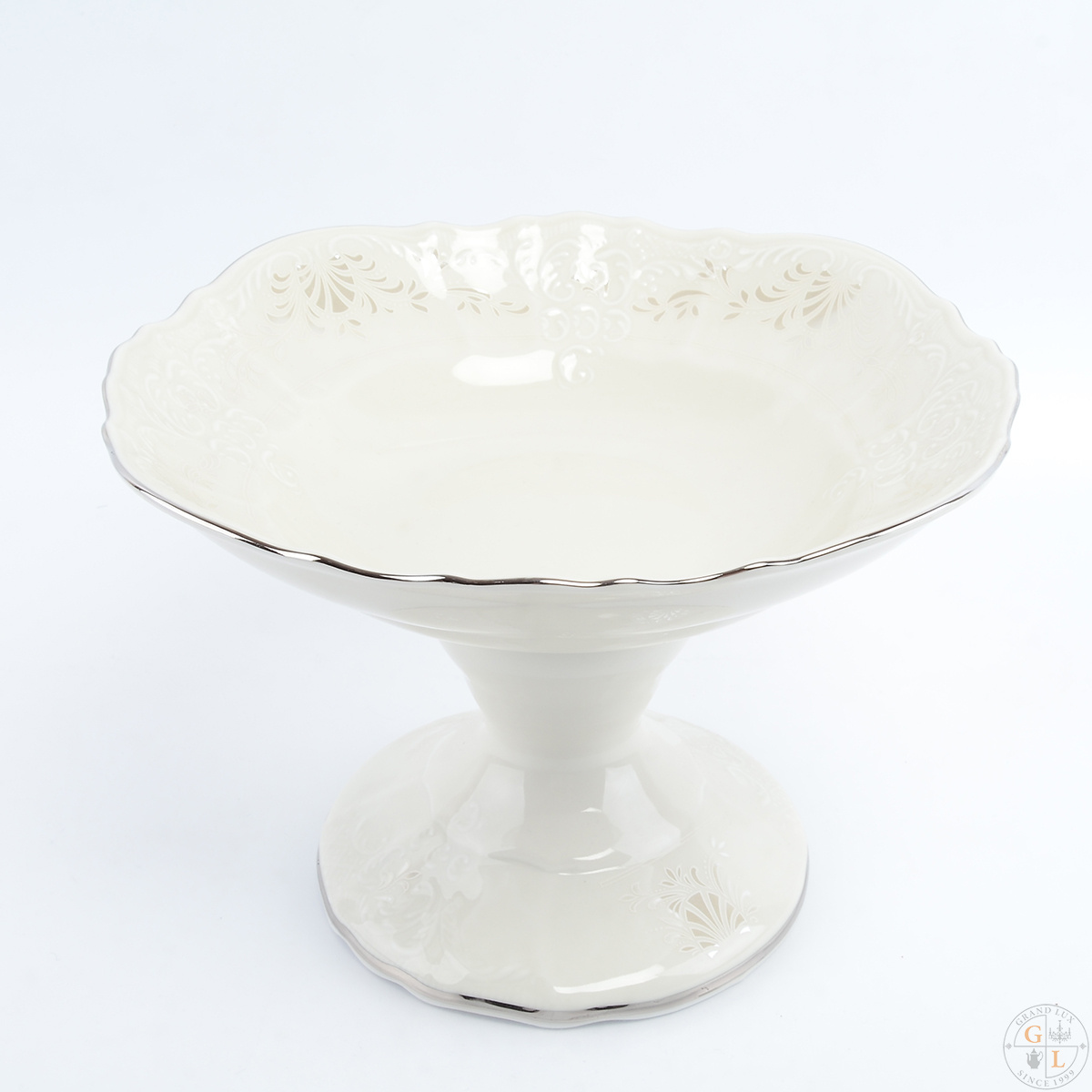 Ваза для фруктов на ножке Bernadotte платиновый узор Be-ivory 25 см