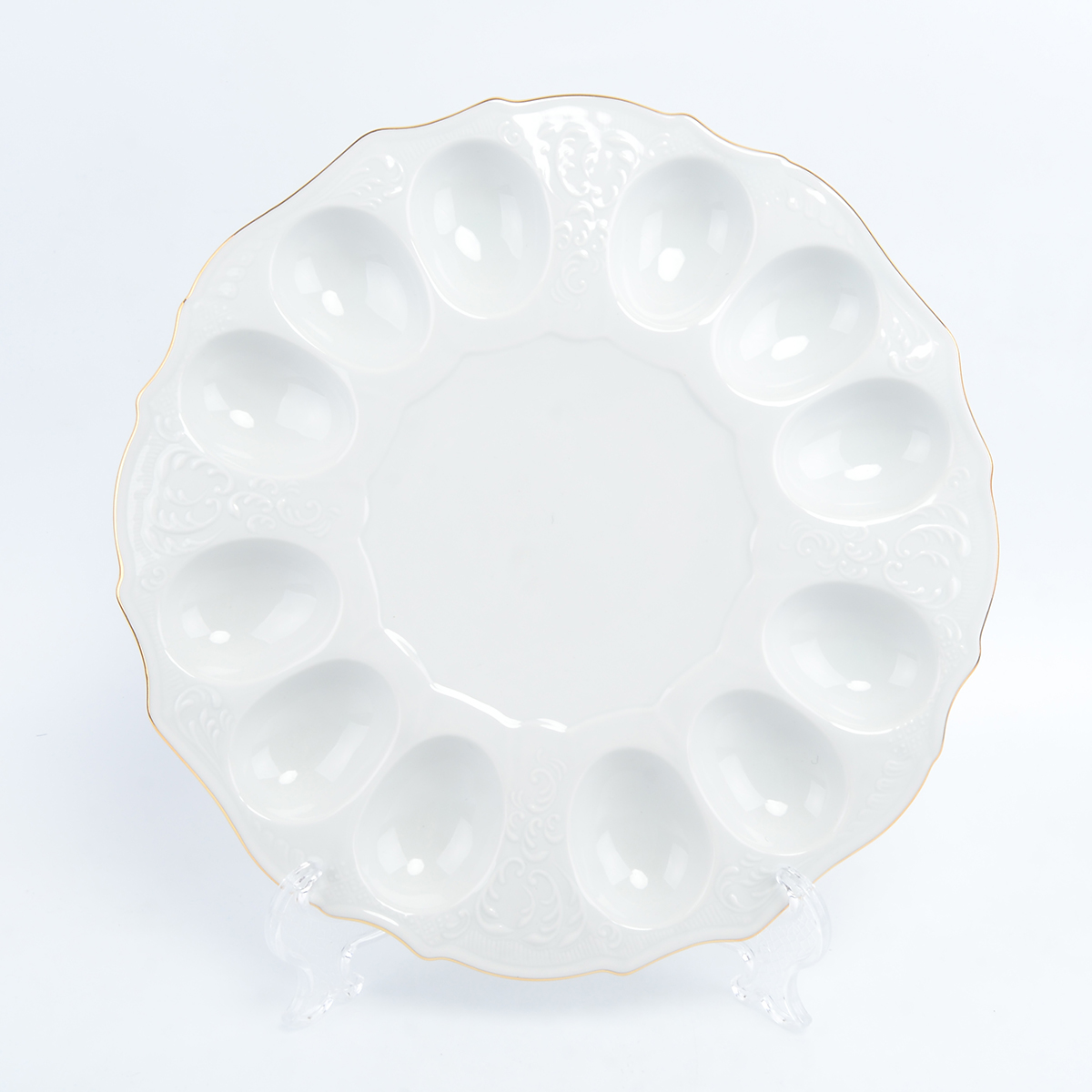 Поднос для яиц Bernadotte Белый узор 27 см Для идеальной подачи фаршированных яиц, целых и половинками, а также для создания яркого акцента сервировки. Поднос для яиц Bernadotte Белый узор будет долго радовать вас своими безупречными формами и утонченным дизайном! Фаршированные яйца или крашенки во время пасхальных праздников будут замечательно смотреться на таком блюде!