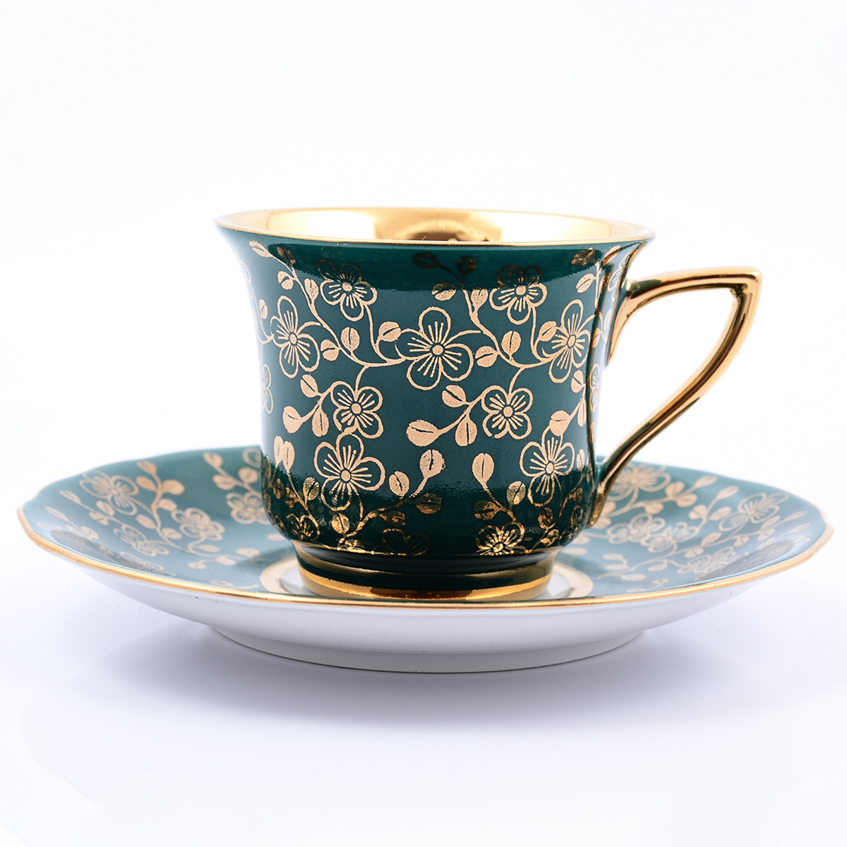 Чашка с блюдцем 100 мл виндзор золотые цветы, зеленый