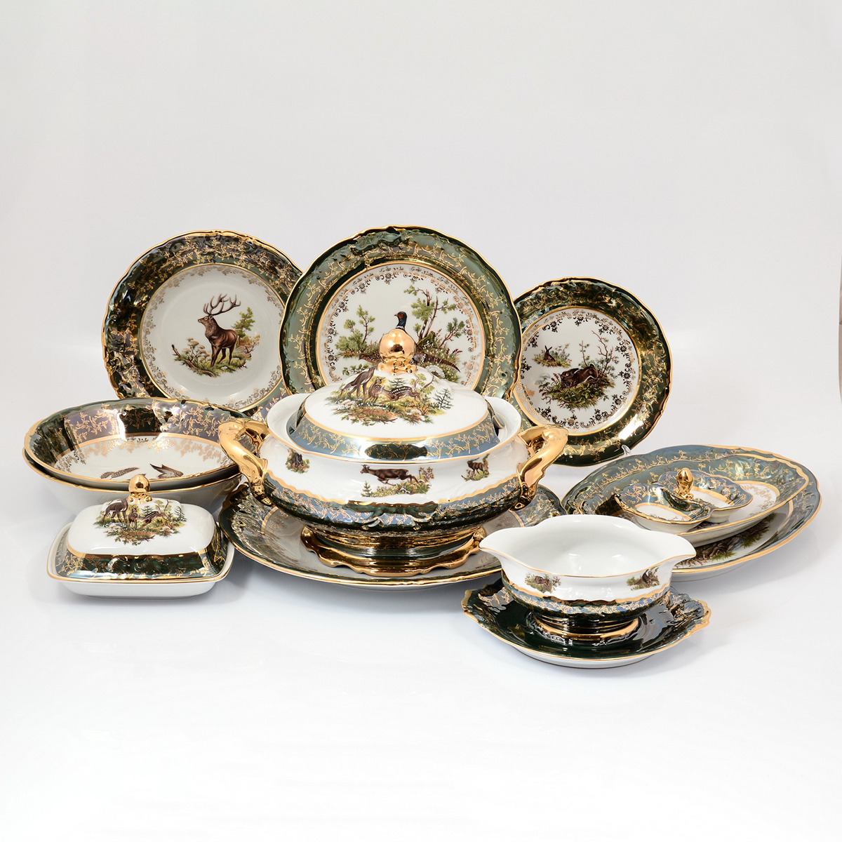 Столовый сервиз на 6 персон 27 предметов охота зеленая Sterne Porcelan