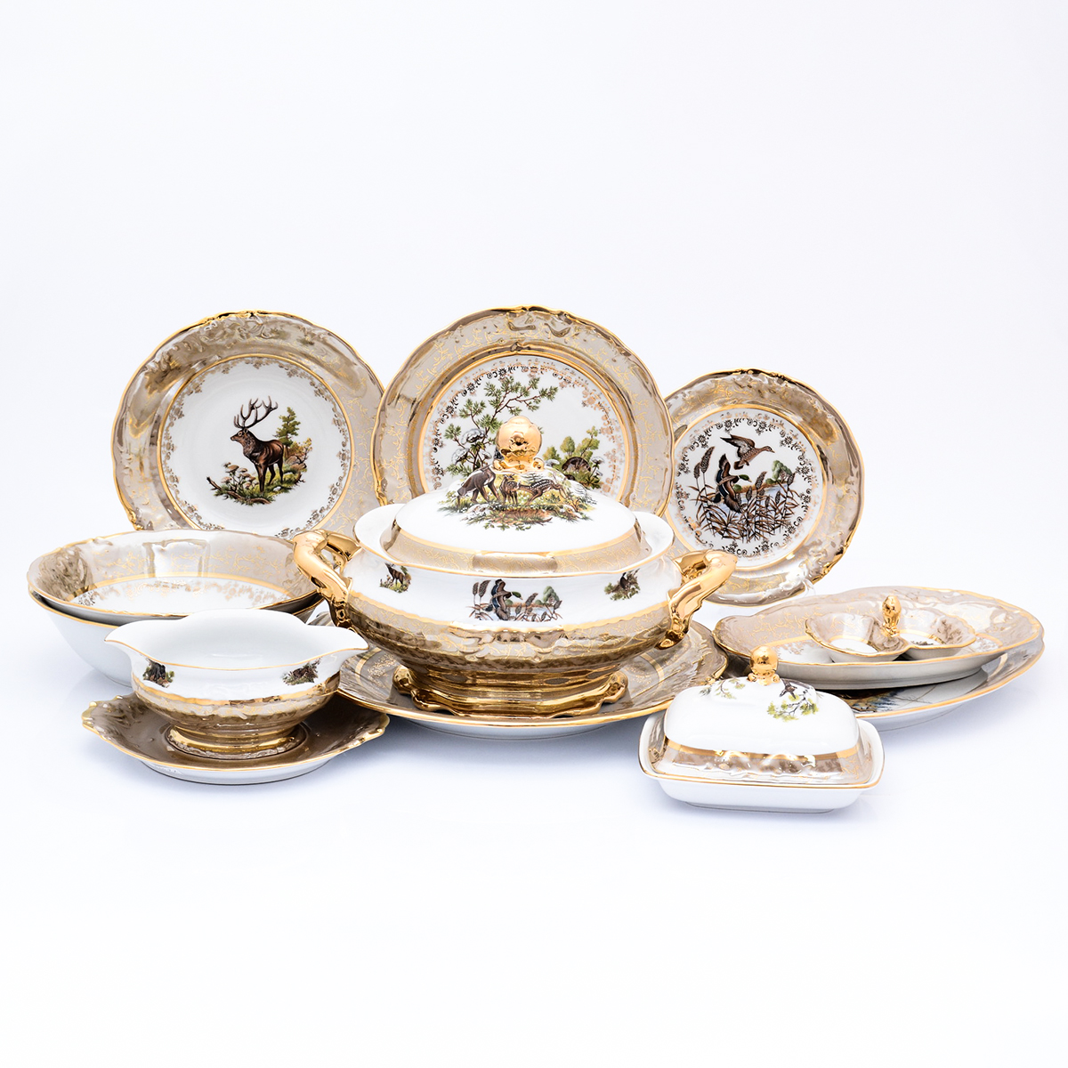 Столовый сервиз на 6 персон 27 предметов охота бежевая Sterne Porcelan