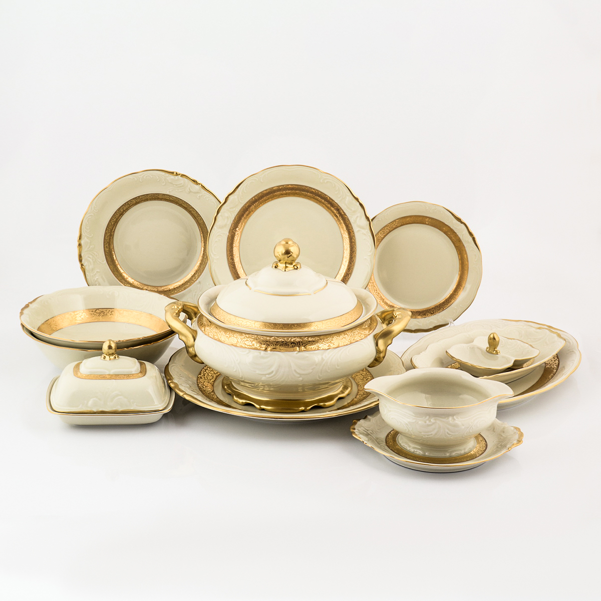 Столовый сервиз на 6 персон 27 предметов матовая лента слоновая кость Ster