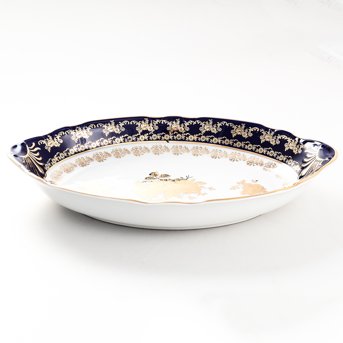 Блюдо для хлеба 33 см констанция золотая роза кобальт