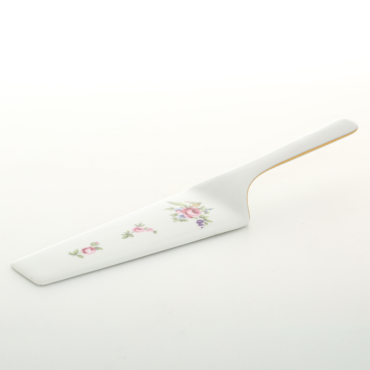 Лопатка для торта bernadotte полевой цветок 25 см. Лопатка для торта Bernadotte Полевой цветок 25 см Подать порционно кусочки торта каждому гостю – это особое искусство. Что сделать это красиво и изысканно, не уронив ни одного кусочка и донести его до цели, предназначена фарфоровая лопатка Bernadotte. Она идеально дополнит блюда или тортницы из одноименной коллекции Полевой цветок, а также подойдет для подачи слоеного салата. Материал: фарфор. Тип товара специальные столовые приборы(для торта,салата,для раскладки блюд) (Чехия, Фарфор, Bernadotte) Страна происхождения Чехия Материал Фарфор Бренд Bernadotte Серия Полевой цветок Назначение Предмет домашнего обихода из фарфора