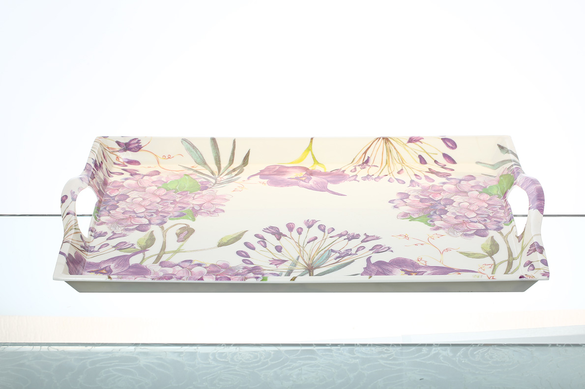 Поднос royal classics цветы 46х35. Поднос 46х34 Гортензии, ирисы и другое лиловое многообразие – очаровательный и нежный поднос станет вашим надежным помощником в сервировке стола, ведь на нем может поместиться немало элементов в виде стаканов, бокалов, креманок и тарелок. Включайте фантазию и вы увидите все грани функциональности изделия, качество которого подтверждено сертификатами, а практичность – многочисленными мнениями хозяюшек.