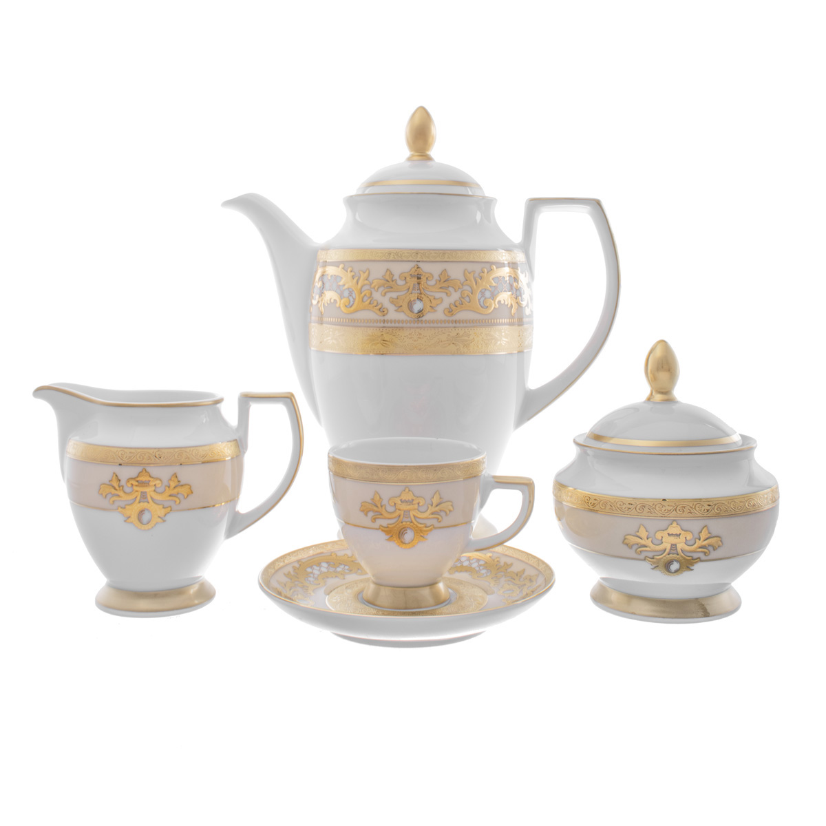 Кофейный сервиз Falkenporzellan Alena 3d Creme Gold Constanza 110мл
