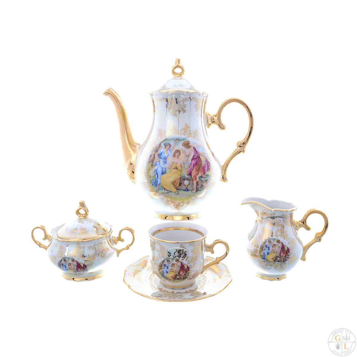 Кофейный сервиз мокко Queens Crown мадонна перламутр корона 6 персон