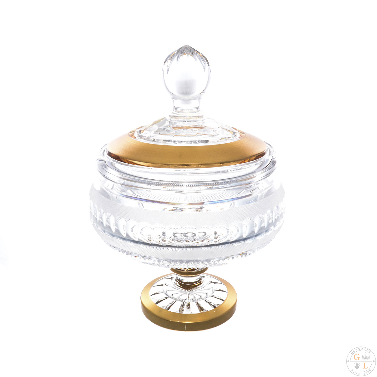 Конфетница с крышкой на ножке хрусталь с золотом crystal heart 16 см. Тип товара Конфетницы (Чехия, Хрусталь, Crystal Heart) Страна происхождения Чехия Материал Хрусталь Бренд Crystal Heart Серия Crystal Heart Назначение Предмет домашнего обихода из хрусталя