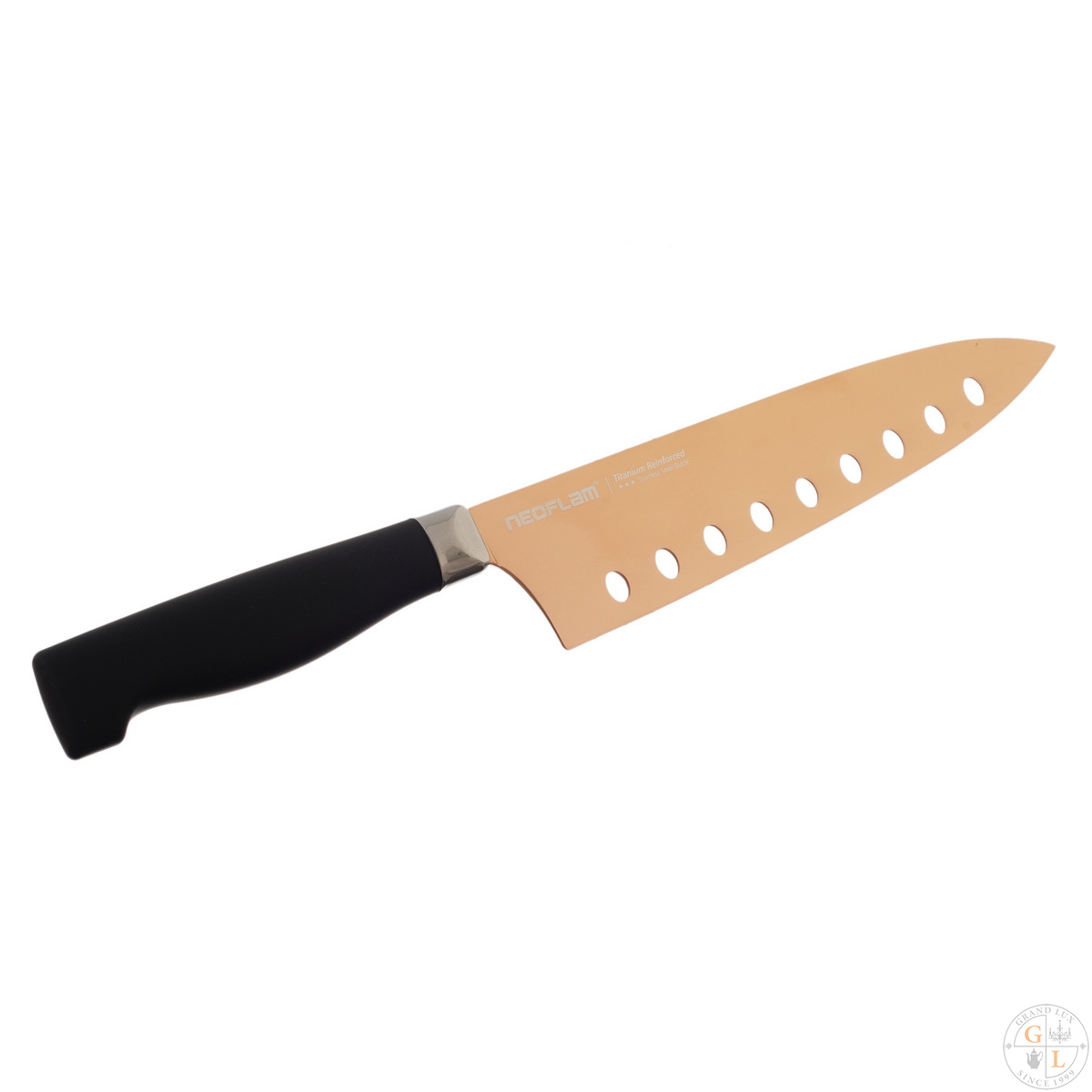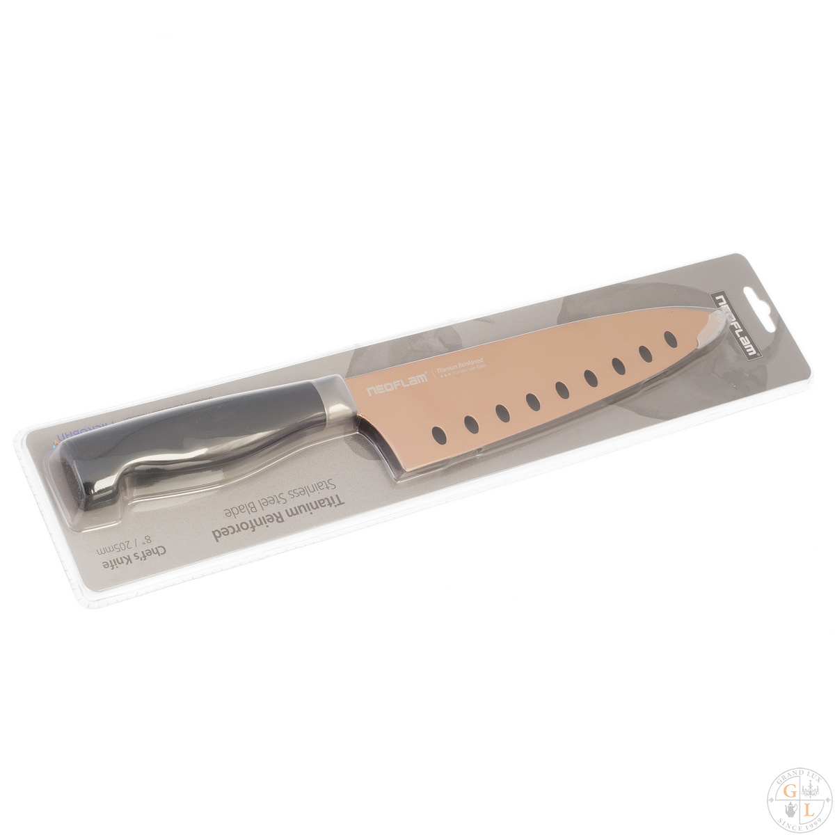 Нож шеф neoflam 33 см. Нож Neoflam Незаменимая вещь на вашей кухне – нож Neoflam. Японская высокоуглеродистая нержавеющая сталь, надежная конструкция, фторсодержащее каучуковое покрытие рукоятки обеспечивает антибактериальную защиту во время эксплуатации прибора. Нож легко и плавно скользит по пище, которая не оставляет на его лезвие следов. Используйте качественные и прочные ножи, чтобы сохранить вашу кухню гигиеничной, а нарезку продуктов сделать простой и удобной. Даже на протяжение длительного использования без заточки нож сохраняет свои свойства, оставаясь острым. Рукоятка ножа имеет удобный захват, поэтому даже длительная работа на кухне с приборами не затруднит вас. Нож Neoflam: выбор шеф-поваров номер один. Тип товара ножи (КНР, Нержавеющая сталь, Neoflam) Страна происхождения КНР Материал Нержавеющая сталь Бренд Neoflam Серия Neoflam Назначение Приготовление еды