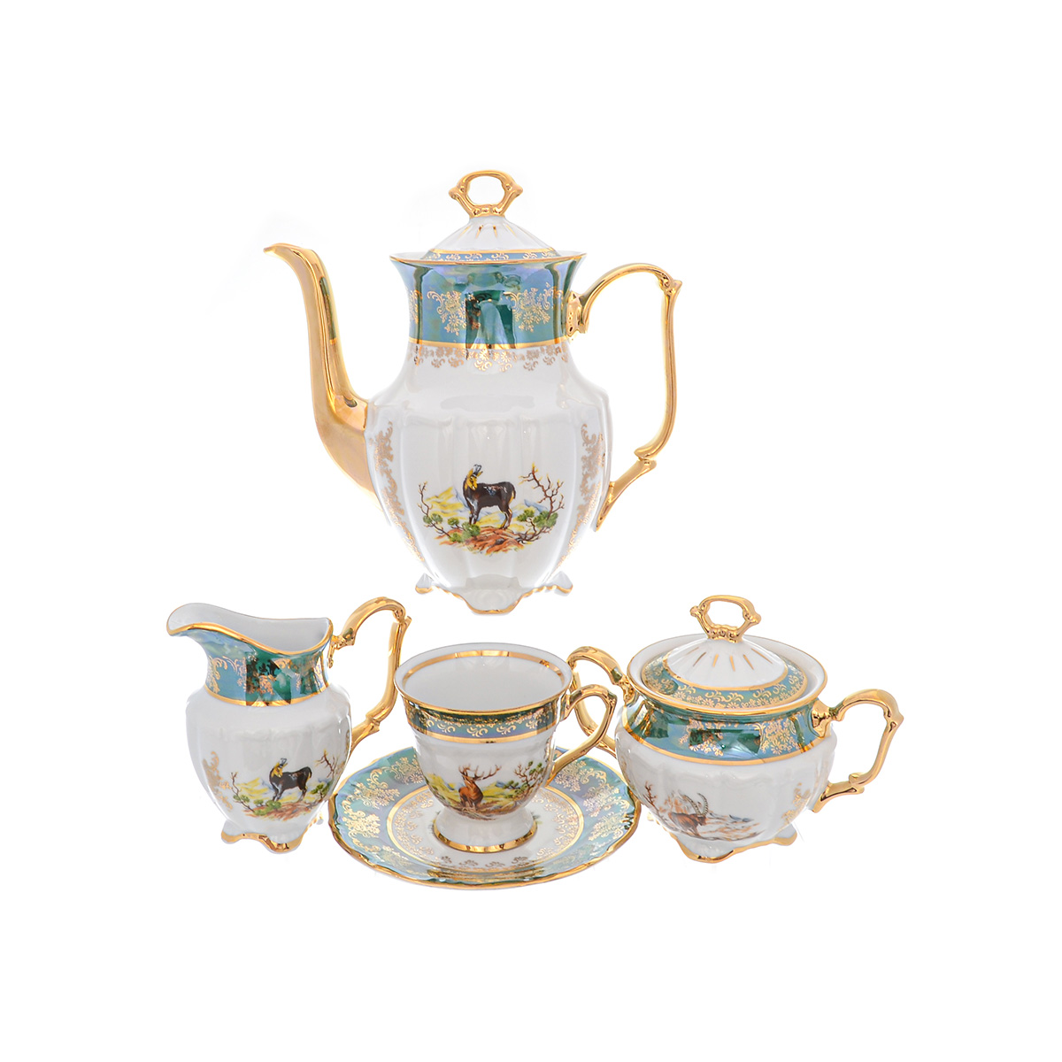 Кофейный сервиз Repast охота зеленая мария-тереза 15 предметов на 6 персон
