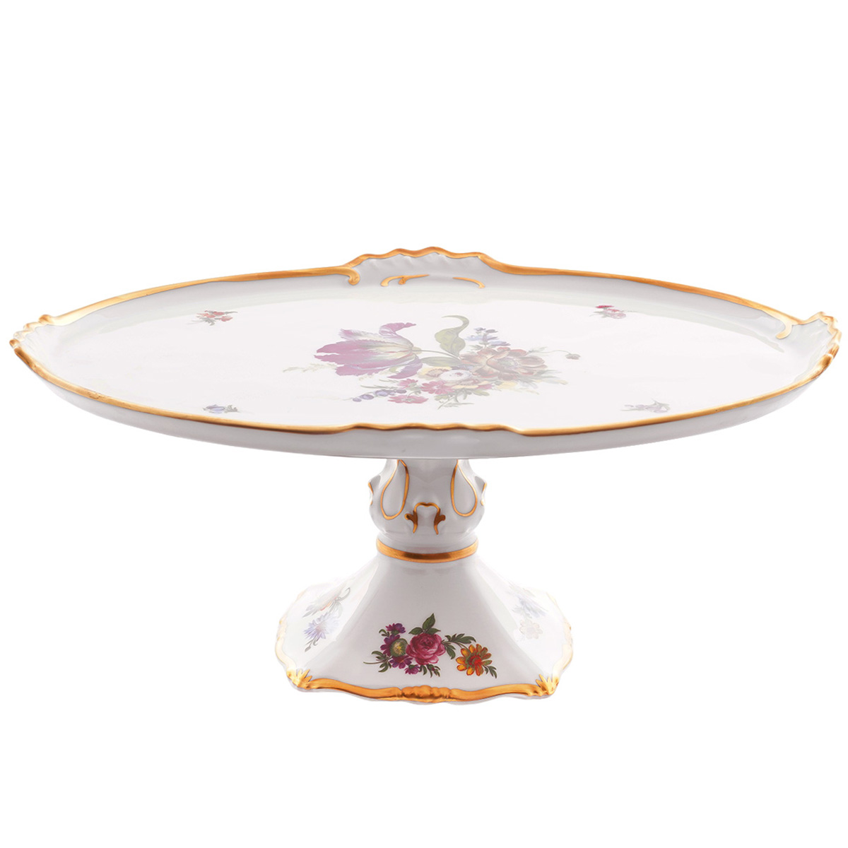 Блюдо овальное на ножке Queens Crown мейсенский букет 37см