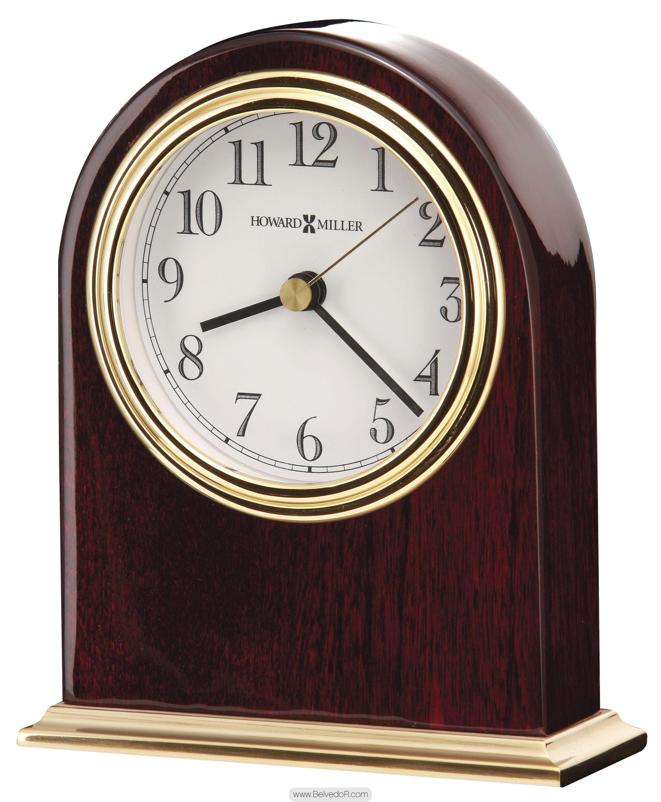 Настольные часы howard miller 645-446 monroe (монро). Размеры 4 x 11 x 13 см Артикул 645-446 Механизм Кварцевый Циферблат под стеклом - Мелодия - Бой - Материал Дерево Эти настольные часы повторяют форму арки. Металлическое основание покрыто полированной латунью. Белый циферблат дополняют цифры черного цвета, рифленая оправа цвета полированной латуни и латунная секундная стрелка. Кварцевый механизм, в поставку включена 1 батарейка типа АА. Корпус изготовлен из массива дерева. Тонирование и полировка корпуса выполнены в суперглянцевом цвете палисандрового дерева. Бренд Howard Miller