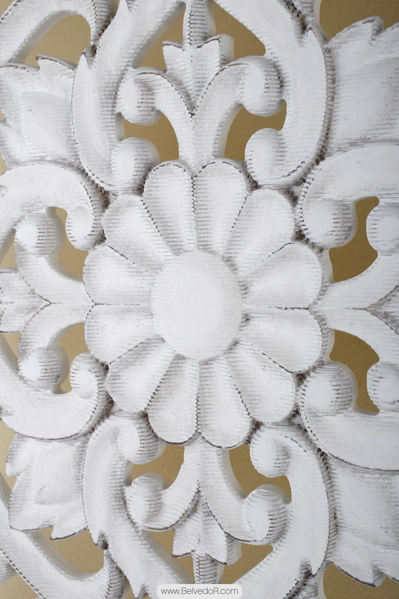 Отделка в грязно-белом цвете, с легкими потертостями.