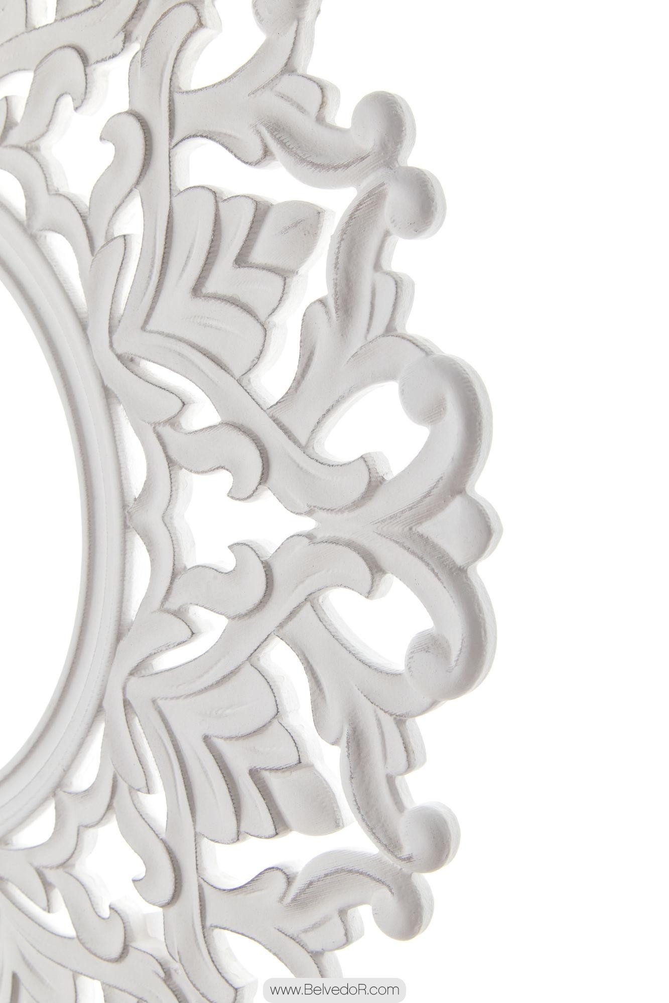 Размеры 60 x 60 x 2 см Артикул 85078 Циферблат под стеклом - Мелодия - Бой - Декоративное зеркало в резной раме из МДФ. Диаметр самого зеркала - 25,5см Отделка в грязно-белом цвете, с легкими потертостями. Прекрасно подходит для перекрашивания в нужный увет. Бренд Tomas Stern