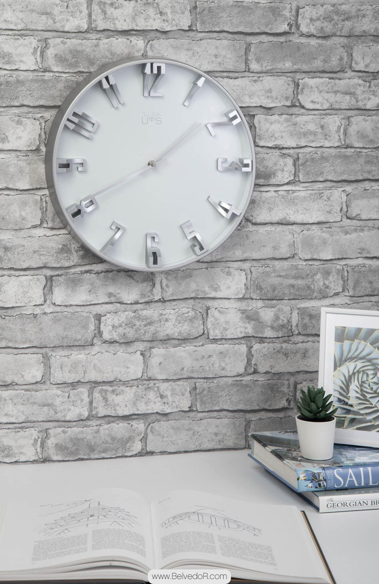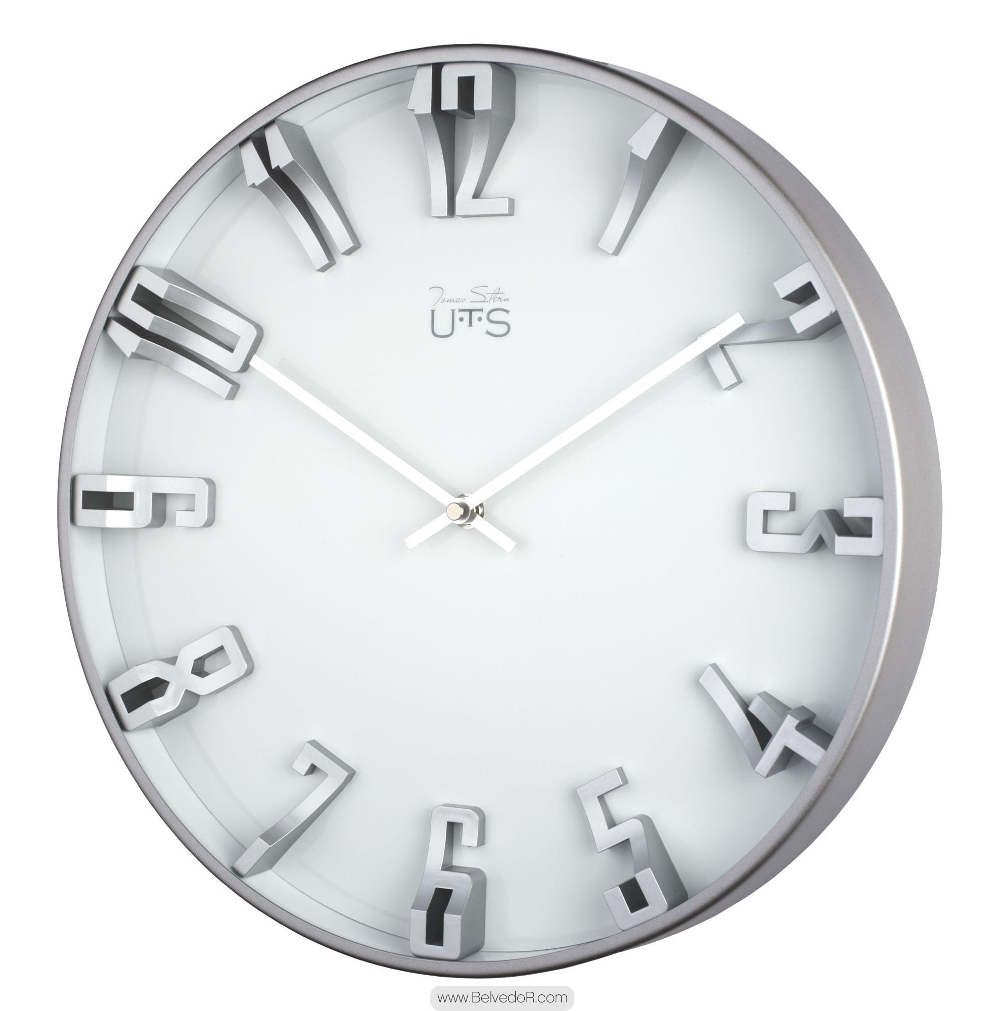 Кварцевые настенные часы в металлическом корпусе, под стеклом. Металлический циферблат белого цвета.