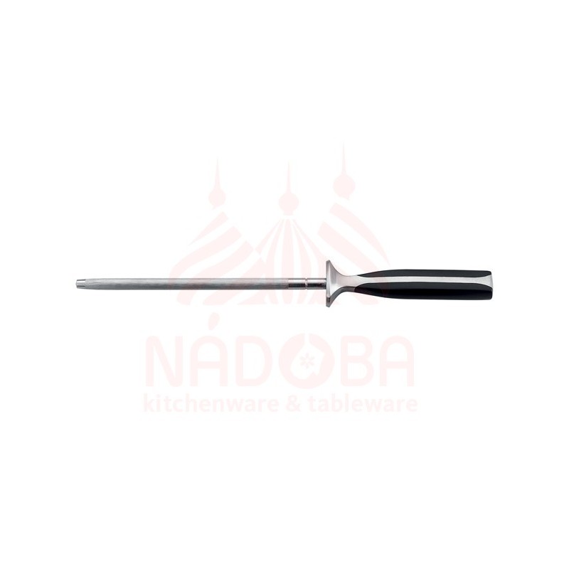 Мусат для ножей ursa 20 см 722615. Изготовлен из высокопрочной хромванадиевой стали Ручка выполнена из высокопрочной кованной нержавеющей стали со втавкой из ABS-пластика, котороая не позволяет выскальзывать мусату из рук Гарантия 10 лет Мусат для ножей URSA 20 см 722615 Кухонный инструмент для правки и заточки ножей Предназначен для выравнивания режущей кромки клинка и увеличения остроты лезвия Помогает поддерживать нож в идеальном состоянии без применения заточки, что увеличивает срок эксплуатации ножа Длина с ручкой - 34 см Вес - 95 грамм
