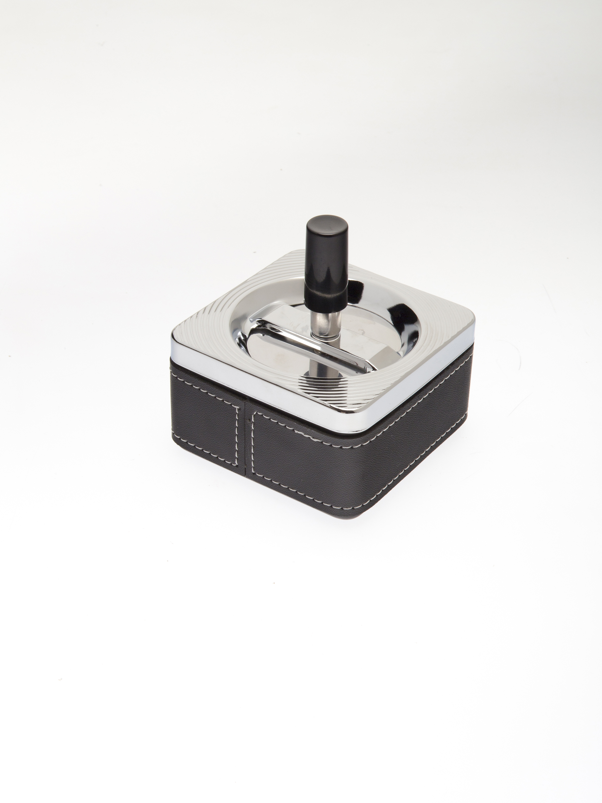 Пепельница S.Quire квадратная, сталь, покрытие никель + искусственная кожа