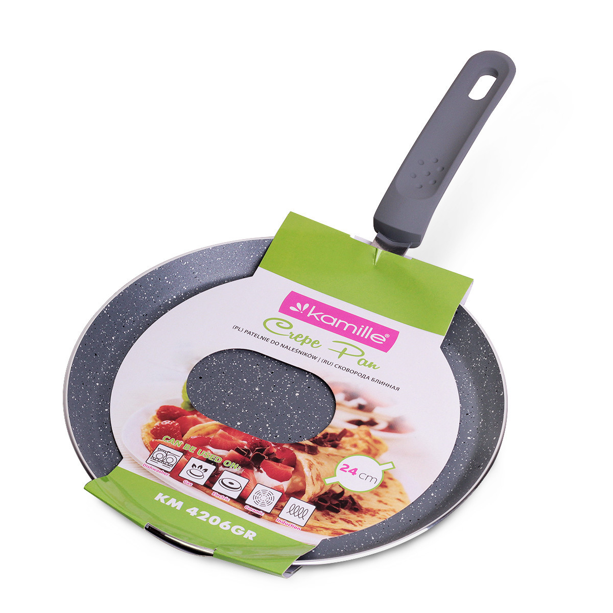 Сковорода блинная 24 см. Kamille Km-4206gr (индукция) серый мрамор
