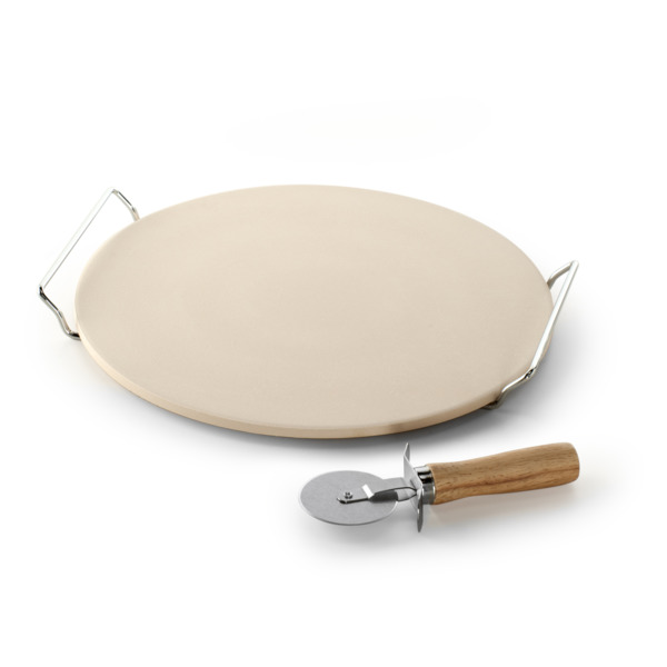 Набор для пиццы 3пр: камень для приготовления на подставке 33см и нож для