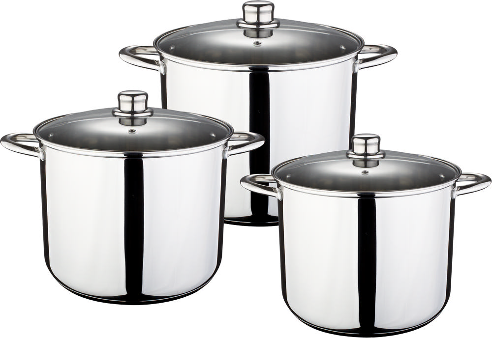 Посуда набор kl-4252 kelli 6пр. нерж.ст.. Набор из нержавеющей стали 6 предметов, Кастрюля 13,5 л крышка 28 см, кастрюля 11,5 л., крышка 26 см, кастрюля 9,5л., крышка 24 см, Жпропрочные крышки с паровыпуском, капсульное дно, надежные клепанные ручки  развернуть описание ▼