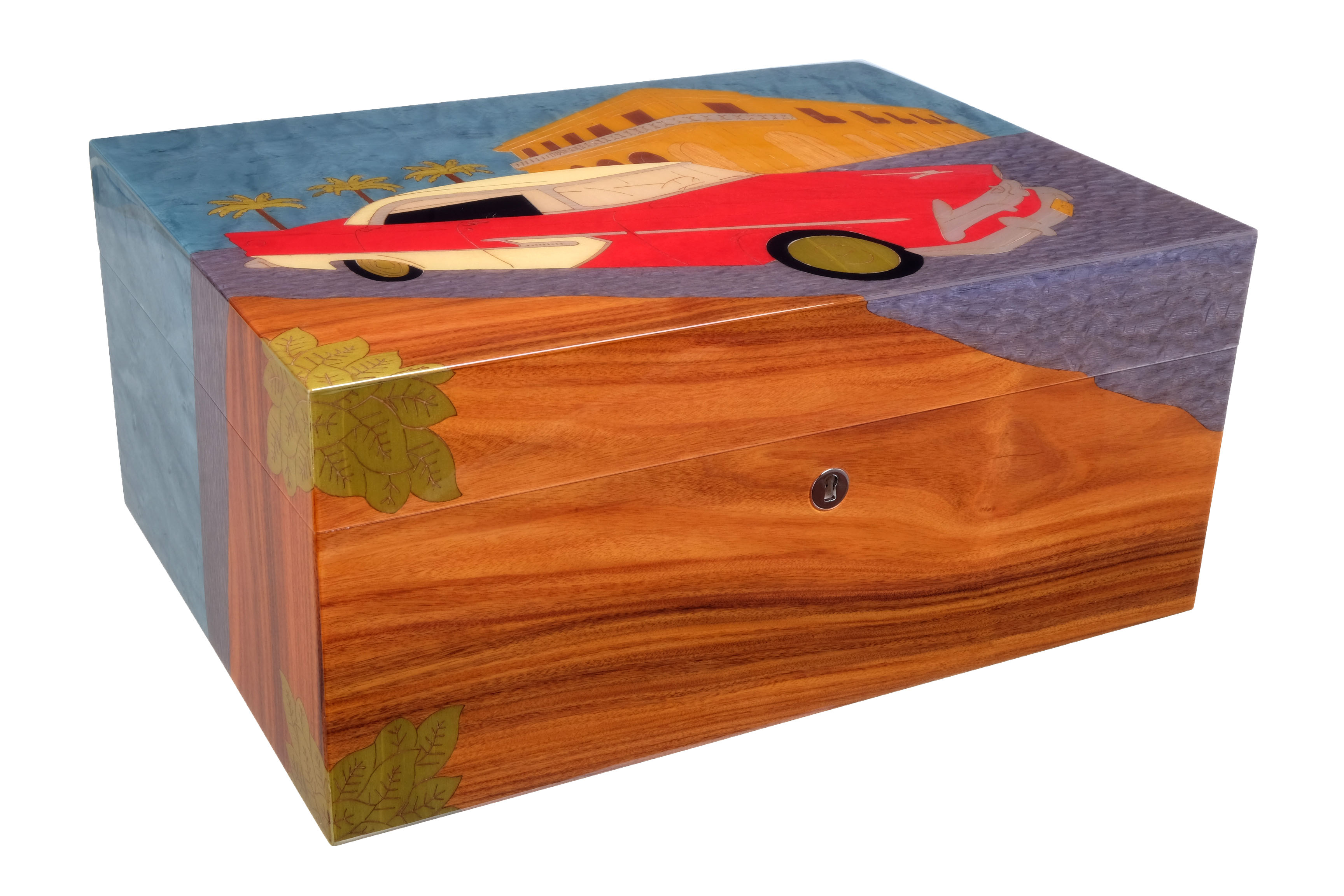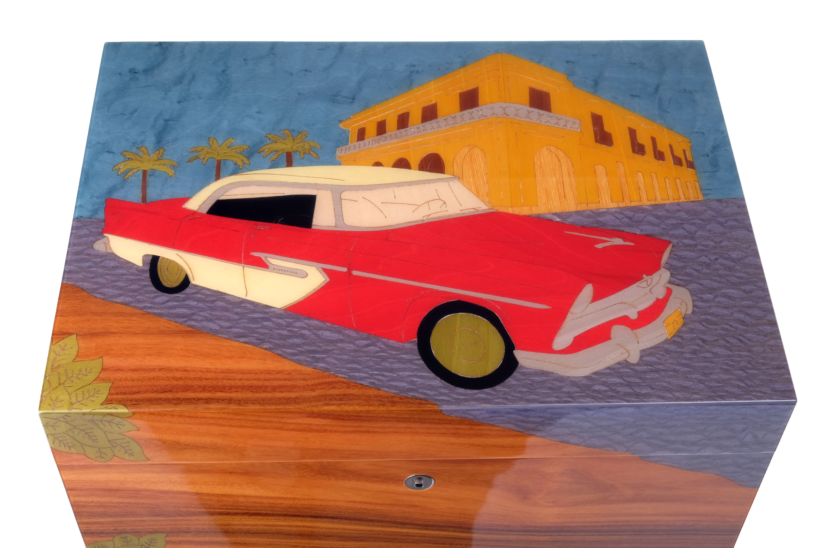 Хьюмидор gentili cuba на 80 сигар (инкрустация). Великолепный массивный хьюмидор ручной работы на 80 сигар от Fabrizio Gentili SRL. Более 30-ти лет фабрика Gentili производит шикарные хьюмидоры c использованием как современного высокотехнологичного оборудования, так и старинных приемов итальянских мастеров-краснодеревщиков. В данной модели используется техника «Маркетри» — один из вариантов Интарсии — инкрустации по дереву: кусочки шпона разных пород и окраса вручную вырезаются и вклеиваются в шпон фона, создавая картину на поверхности украшаемого предмета интерьера. Корпус представляет собой комбинацию нескольких видов дерева, что обеспечивает стойкость к деформации при колебаниях температуры и влажности. Внутренняя отделка выполнена из испанского кедра. Наружная поверхность покрыта шпоном различных пород: Секвойя, Гойябао, Сосна тонированная, Эвкалипт, Дуб и др. , образуя на верхней крышке вид «Старой Гаваны» с классическим автомобилем на переднем плане. Семь слоев рояльного лака придают глубокий блеск и красоту. В комплекте увлажнитель с акриловым полимером, фирменный гигрометр Gentili, съемный лоток для сигар c перегородкой, фирменный буклет Gentili с информацией о компании и мультиязычной инструкцией по уходу. Подарочная коробка и чехол из Алькантары. Ограниченная серия (всего выпущено 100 штук). Ручная работа, сделано в Италии. Официальный сайт производителя: https://www. gentili-italy. com Материал Инкрустация шпоном различных пород: Секвойя, Гойябао, Сосна тонированная, Эвкалипт, Дуб и др. , кедр Производитель GENTILI, Италия Размер 36х27х15, внутренний 31х21,2х11,5, вес 6 кг