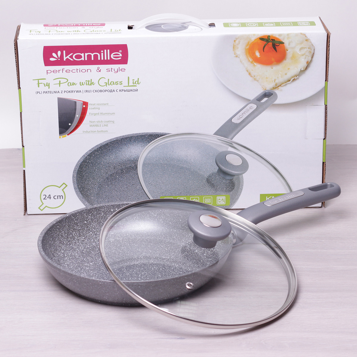 Сковорода Kamille 24см с гранитным покрытием и крышкой