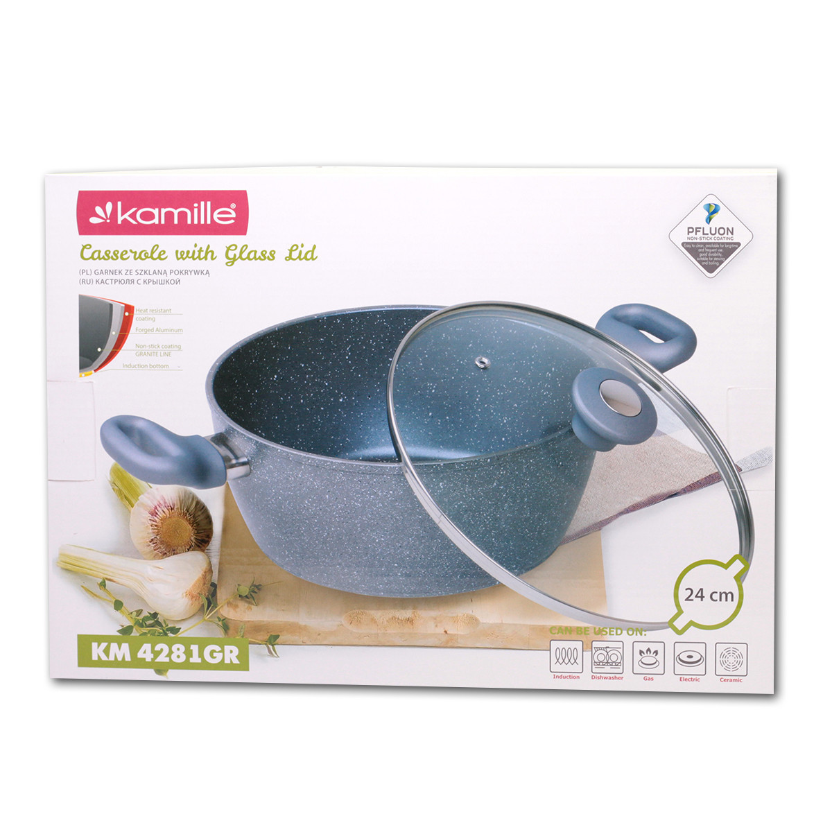 Кастрюля Kamille 24см из литого алюминия с крышкой и антипригарным покрыти
