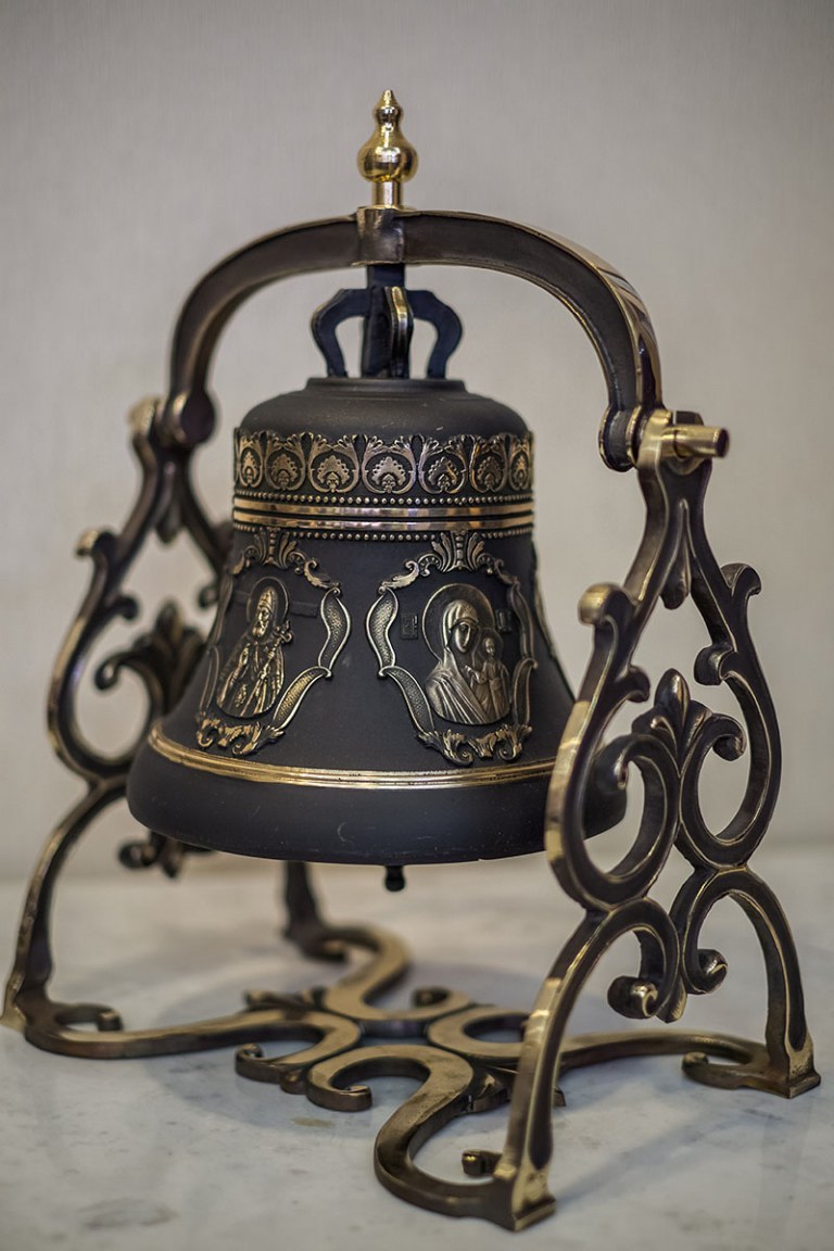 Колокол 5кг на бронзовой качалке пять ликов святых. Колокол на качалке будет эксклюзивным и дорогим подарком, который оценят по достоинству. На колоколе лики Святых: Господь Вседержитель, Казанская икона Божией Матери, Свт. Митрофан Воронежский, Свт. Николай Чудотворец, Св. Вмч. Георгий Победоносец Колокол отливается на заказ, сроки и стоимость,пожалуйста, уточняйте у менеджера.