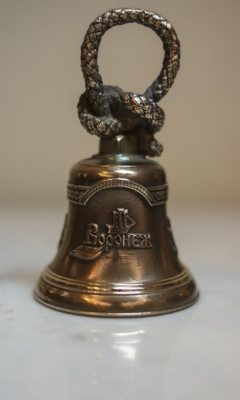 Колокол 0.45кг воронеж с петлей. Воронеж — город в России, административный центр Воронежской области. Расположен на берегах Воронежского водохранилища, реки Воронеж, в 8,5 километрах от впадения её в реку Дон, от Москвы — 463 км. Население города Воронежа — 1 039 801[2] чел. (2017). Вокруг Воронежа образовалась агломерация с численностью населения более 1,3 млн человек. Образует административно-территориальную единицу и муниципальное образование городской округ город Воронеж с единственным населённым пунктом в его составе. С одной стороны: изображение герба города Воронежа С другой стороны: надпись Воронеж Поверхность колокола тонированная.