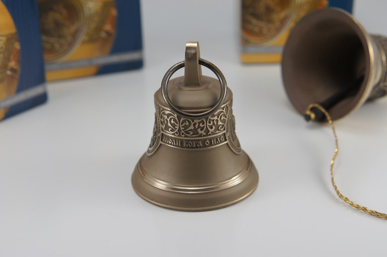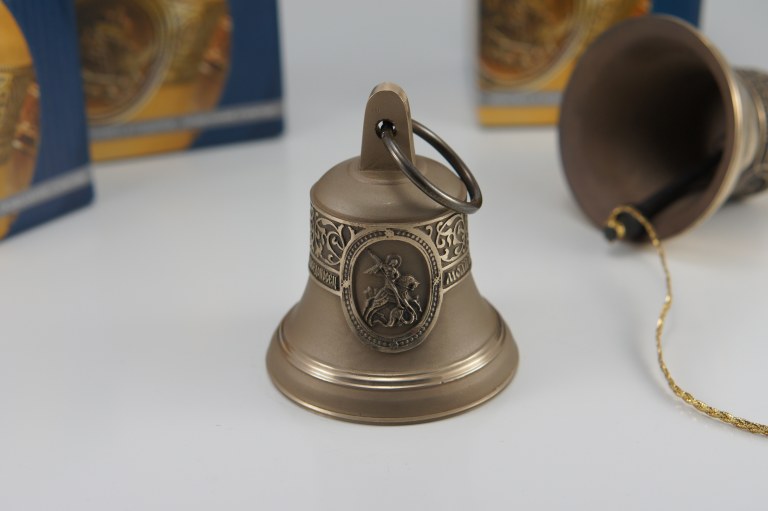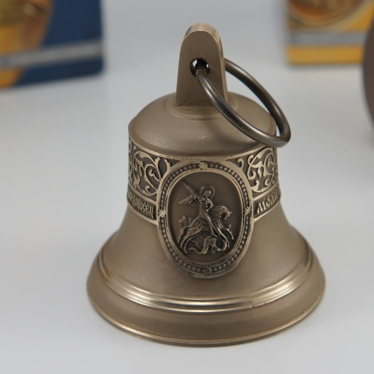Колокол 0.3кг святой вмч. георгий победоносец. Святой великомученик Георгий Победоносец почитаем в России как покровитель российского воинства и державной мощи Российского государства, а также как небесный покровитель российской столицы. В последнее время его все чаще стали называть святым покровителем депутатов Государственной думы. Кроме того, святой считается покровителем всех, занимающихся фермерским хозяйством. Колокол с ликами Святого вмч. Георгия Победоносца и Спаса Надпись на колоколе: Св. вмч. Георгий Победоносец моли бога о нас Поверхность светлая матовая с вызолочением Уважаемые покупатели, просим обратить внимание что каждый колокольчик ручной работы и может незначительно отличаться от фотографий.