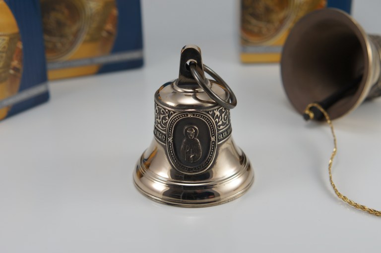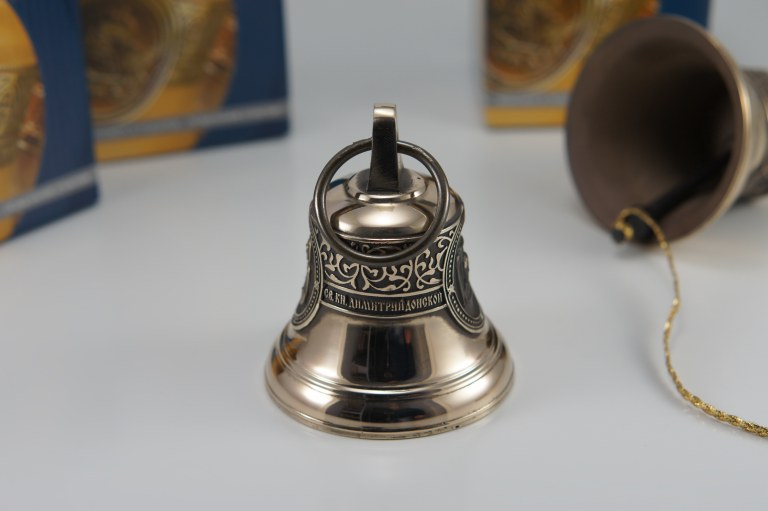 Колокол 0.3кг святой благоверный великий князь димитрий донской. Великий князь Московский Димитрий Донской канонизирован как святой благоверный на основании его больших заслуг перед Церковью, а также на основании его личной благочестивой жизни, воплотившей спасительную христианскую идею пожертвования собой ради блага и спасения ближних. К помощи святого Димитрия Донского обращаются, чтобы укрепить страну, чтобы отстоять ее целостность и единство, отразить все угрозы, чтобы умножить веру и благочестие народа, укрепить семьи – защитить от вымирания телесного и смерти духовной. Колокол с ликами Димитрия Донского и Спаса Надпись на колоколе: Св. кн. Димитрий Донской моли бога о нас Поверхность полирована с чернением Уважаемые покупатели, просим обратить внимание что каждый колокольчик ручной работы и может незначительно отличаться от фотографий.