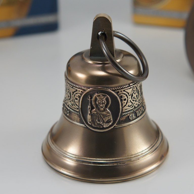 Колокол 0.3кг святой равноапостольный царь константин. Архангел Михаил считается покровителем воинов. Является защитником всех православных христиан от видимых и невидимых врагов и злых духов. Крепка вера православных христиан в его помощь во всех бедах, скорбях, нуждах. К нему обращаются с молитвами об исцелении (это связано с почитанием его как победителя злых духов, которые в христианстве считались источником болезней), ему также молятся при входе в новый дом и при освящении дома, прося о спасении от воров и стихийных бедствий. В православии он почитается также как покровитель строительства и строителей. Колокол с ликами Святого равноапостольного царя Константина и Спаса Надпись на колоколе: Св. царь Константин моли бога о нас Поверхность тонирована Уважаемые покупатели, просим обратить внимание что каждый колокольчик ручной работы и может незначительно отличаться от фотографий.