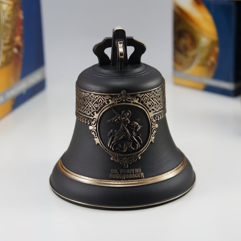 Колокол 1кг святой вмч. георгий победоносец. Святой великомученик Георгий Победоносец почитаем в России как покровитель российского воинства и державной мощи Российского государства, а также как небесный покровитель российской столицы. В последнее время его все чаще стали называть святым покровителем депутатов Государственной думы. Кроме того, святой считается покровителем всех, занимающихся фермерским хозяйством. Колокол с ликами Святого вмч. Георгия Победоносца и Спаса Надпись на колоколе: Св. Георгий Победоносец Поверхность чернёная с вызолочением Уважаемые покупатели, просим обратить внимание что каждый колокольчик ручной работы и может незначительно отличаться от фотографий.