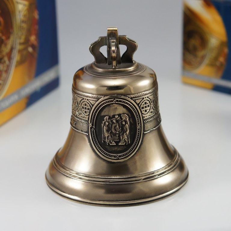 Колокол 1кг икона святая троица. Христианское учение говорит: Бог един в трех лицах; Бог Отец, Бог Сын и Бог Дух Святой. Дух Святой предвечно исходит от Бога Отца и пребывает в Сыне, посылается в мир от Отца Сыном. По своему достоинству Он не ниже и не выше Отца и Сына, но равен Им. Догмат о Пресвятой Троице является основой христианского вероучения. Одна из трёх главных икон, которые должны быть в каждом доме, икона «Святая Троица». Перед иконой молятся о прощении грехов. Она считается исповедальной. Колокол с ликами Святой Троицы и Спаса Нерукотвороного Образа Надпись на колоколе: Спаси и сохрани Поверхность тонирована Уважаемые покупатели, просим обратить внимание что каждый колокольчик ручной работы и может незначительно отличаться от фотографий.
