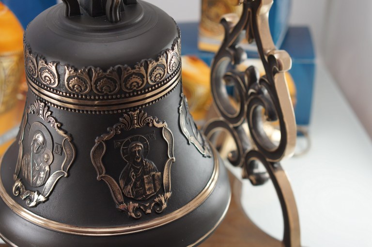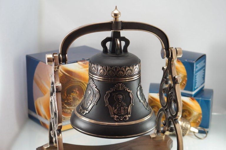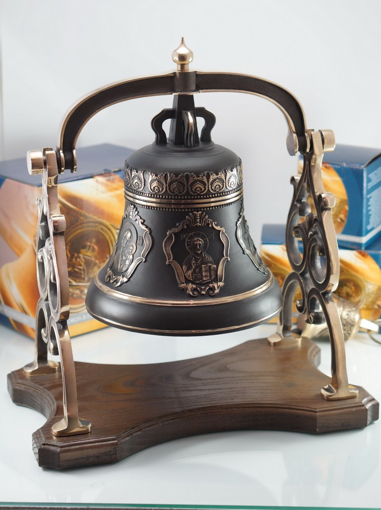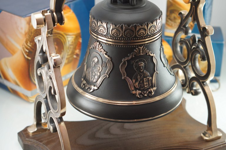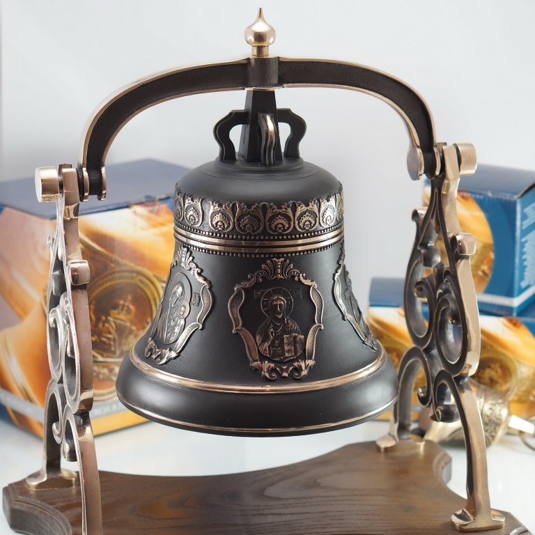 Колокол 5кг на бронзовой качалке пять ликов святых. Колокол на качалке будет эксклюзивным и дорогим подарком, который оценят по достоинству. На колоколе лики Святых: Господь Вседержитель, Казанская икона Божией Матери, Свт. Митрофан Воронежский, Свт. Николай Чудотворец, Св. Вмч. Георгий Победоносец Колокол отливается на заказ, сроки и стоимость,пожалуйста, уточняйте у менеджера.