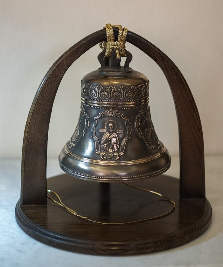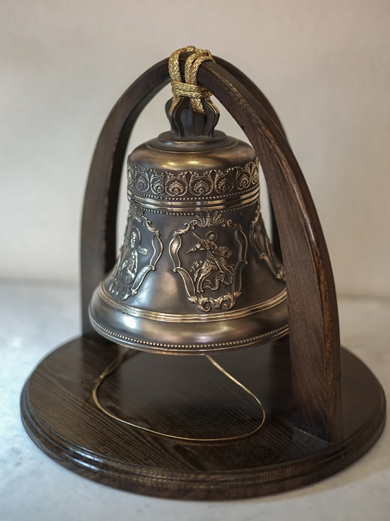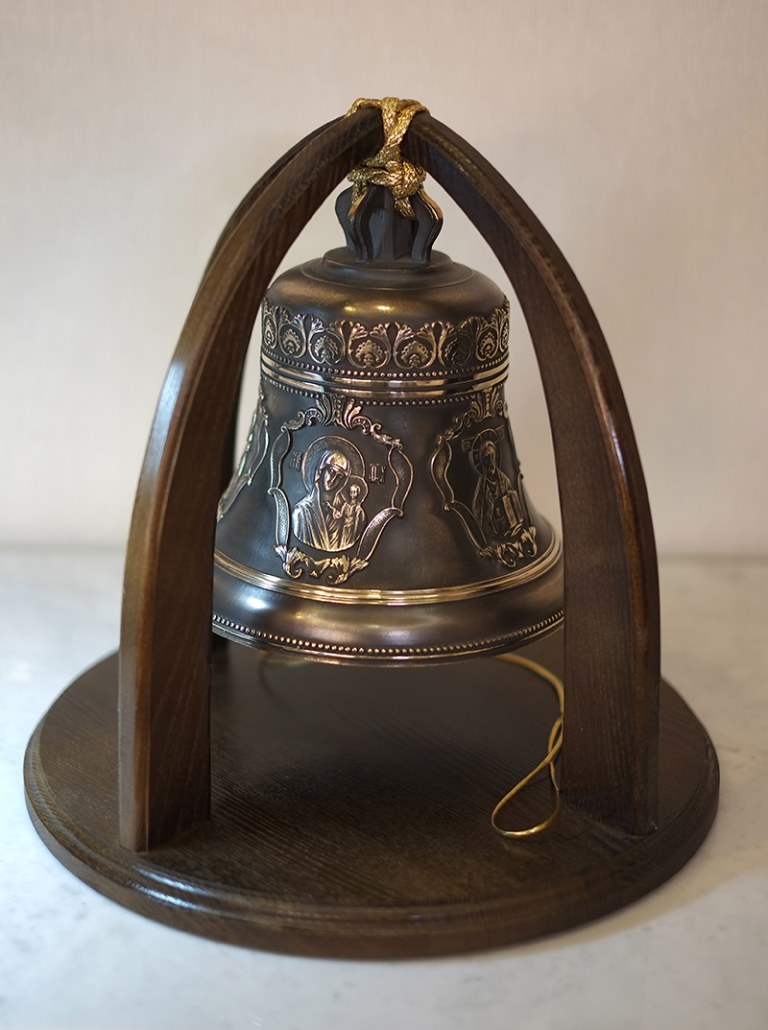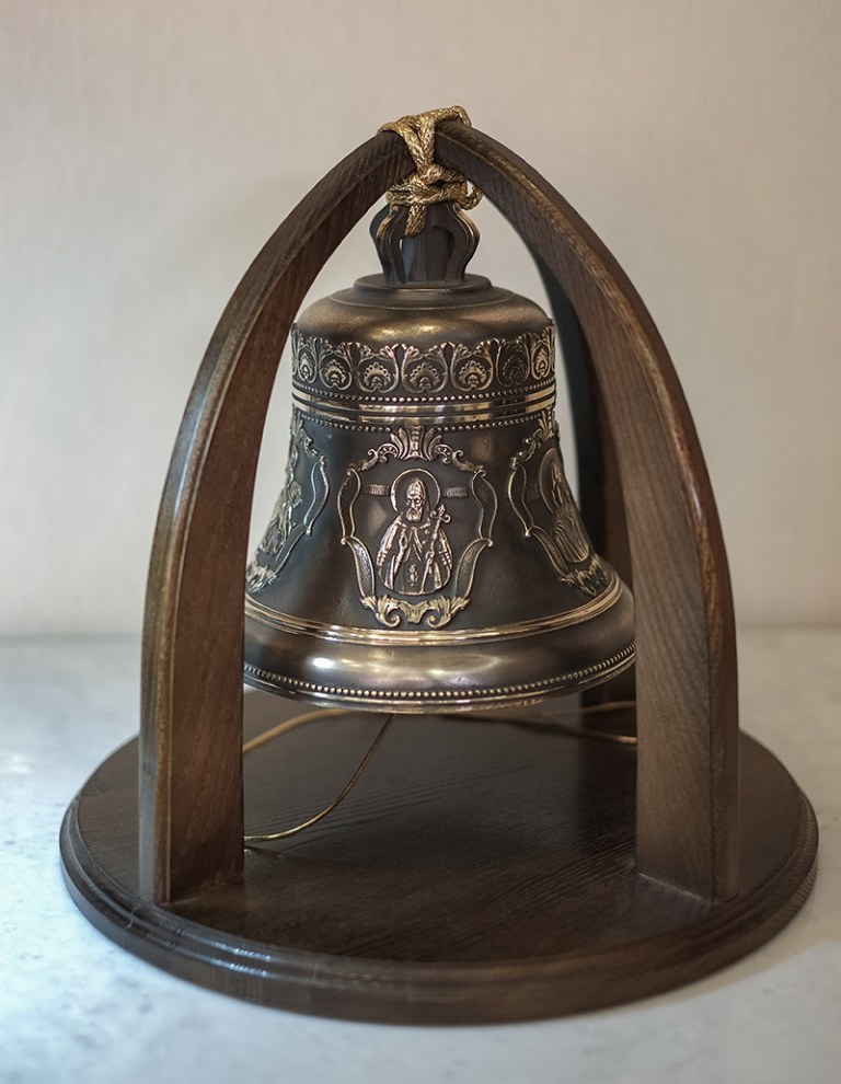 Колокол 5кг с пятью иконами святых на дубовой подставке. Колокол 5кг С пятью иконами Святых на дубовой подставке Колокол будет эксклюзивным и дорогим подарком, который оценят по достоинству. Колокол с пятью иконами Святых: Господь Вседержитель,Казанская икона Божией Матери, Свт. Николай Чудотворец, Св. Вмч. Георгий Победоносец,Свт. Митрофан Воронежский