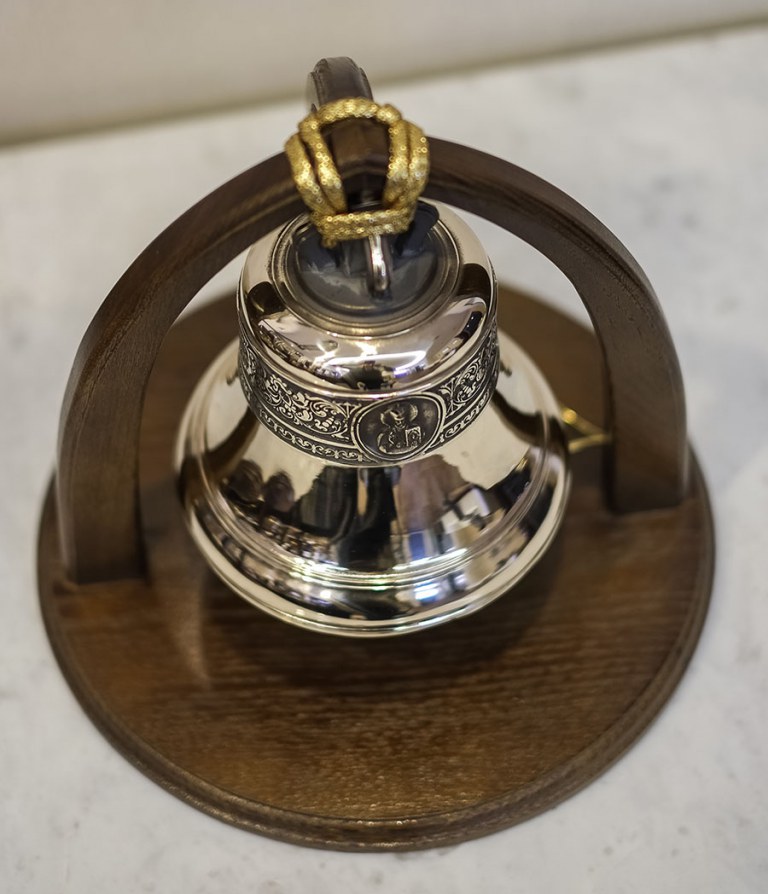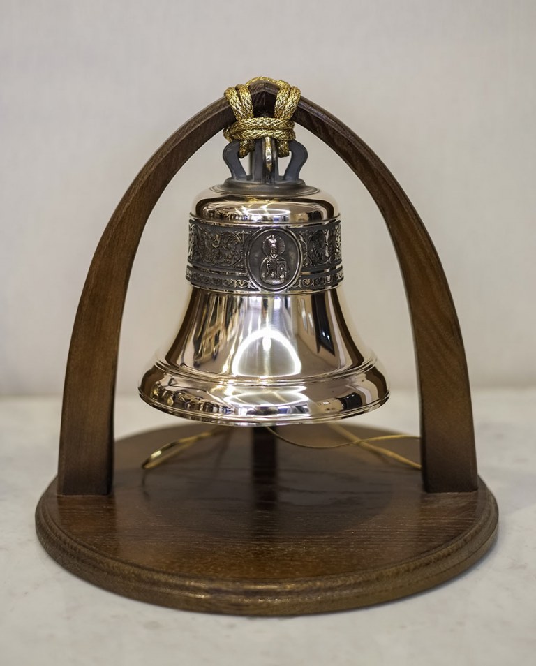 Колокол 3кг святитель николай чудотворец на дубовой подставке.