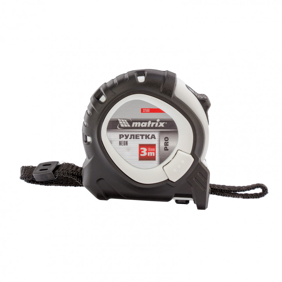 Шт рулетка Neon, 3 м X 16 мм, обрезиненный корпус, 3 фиксации, Pro Matrix