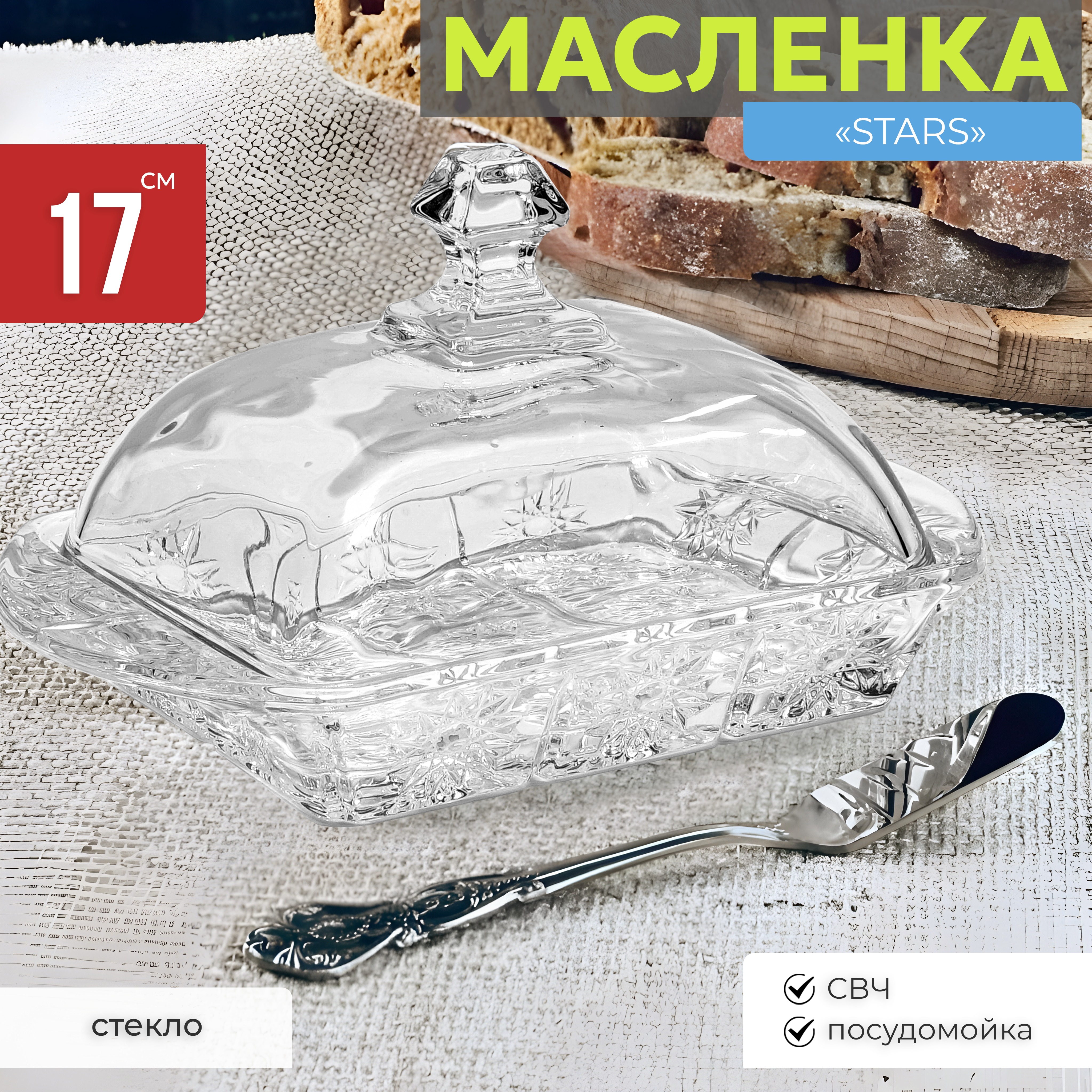 Маслёнка стеклянная Доляна «Семицвет», 15,5x11,5x8 см Набор салатников Thun Луиза Золотая роза 13см (6 шт)
