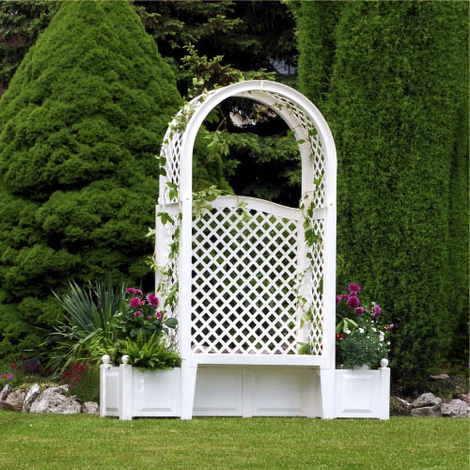 Садовая арочная скамейка KHW Амстердам с двумя ящиками для растений по бокам станет замечательным романтичным украшением вашего садового участка. В ящики-клумбы можно посадить ваши любимые цветы и растения. А шпалера будет поддерживать растения и направлять их рост. Скамейку можно использовать не только в качестве места для отдыха, но и для размещения на ней элементов декора.