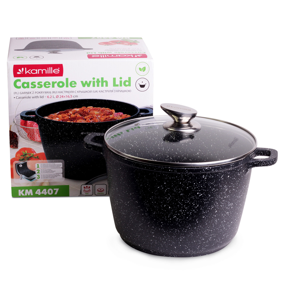 Кастрюля 24*16,5cm из литого алюминия с антипригарным покрытием чёрный мра