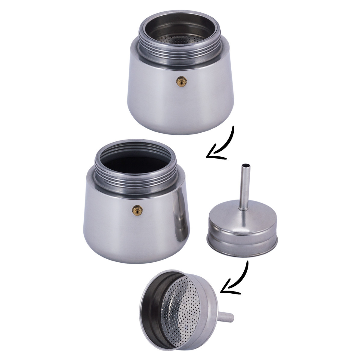 Наполните нижнюю емкость водой, поместите сверху емкость-фильтр и наполните ее молотым кофе, не утрамбовывая его.