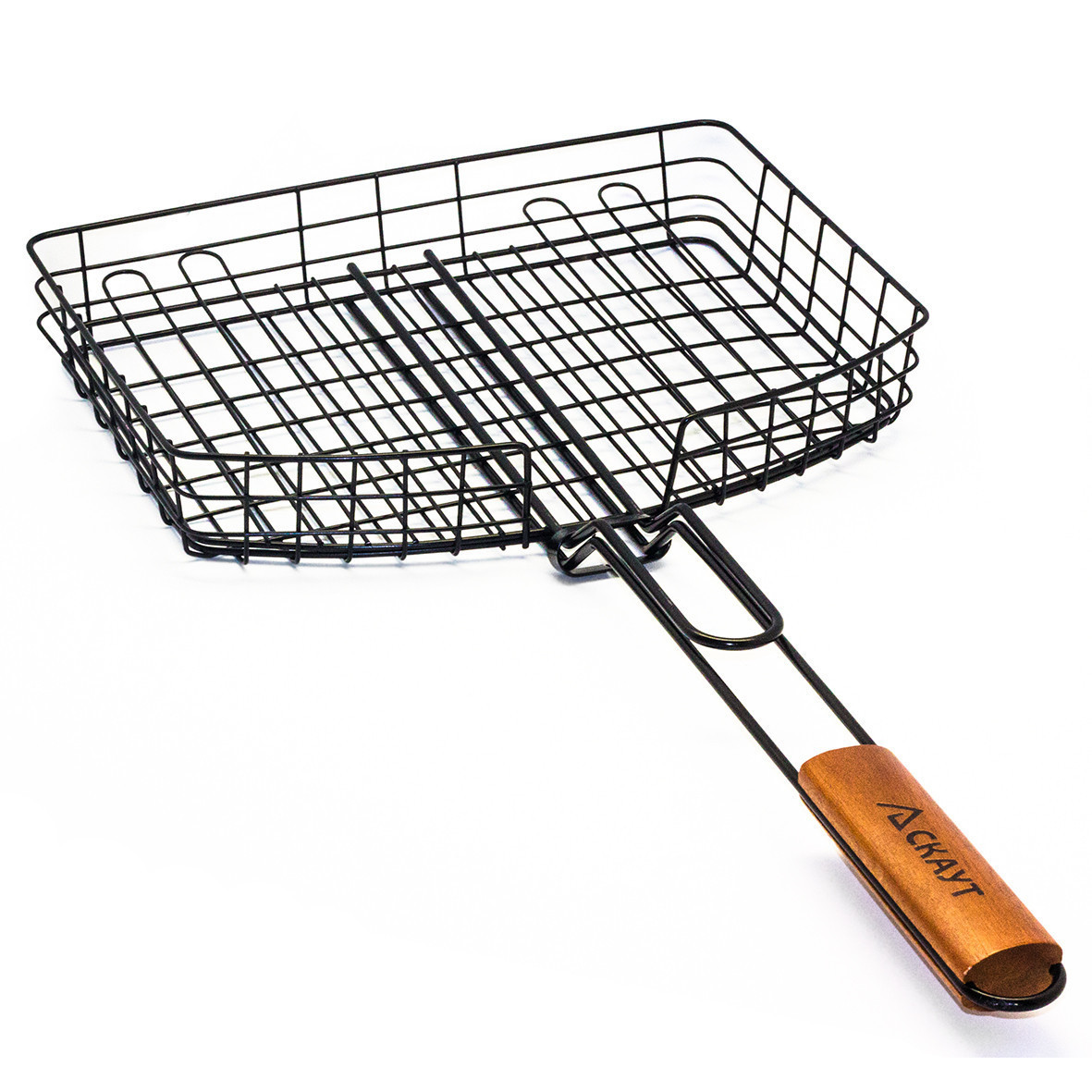 Решетка для гриля глубокая 30.5х32х5.5 см с антипригарным покрытием и дере. Бренд: Скаут Описание: Решетки - надежный и незаменимый помощник для приготовления пищи на открытом воздухе, делают процесс приготовления барбекю легким и приятным Решетка для гриля СКАУТ 0741 глубокая с антипригарным покрытием Материал: сталь с антипригарным покрытием, деревянная ручка Размер рабочей поверхности, см: 33х30х5 Общая длина с ручкой, см: 64 Особенности: прутья решетки изготовлены из безопасного материала с антипргарным покрытием решетка подходит для приготовления различных продуктов и позволяет готовить даже небольшие порции специальная конструкция позволяет удобно закрепить решетку на мангале или жаровне прочное обжимное кольцо надежно фиксирует решетку специальная форма плетения прутьев придает обжаренным продуктам аппетитный вид Рекомендуем: Аксессуары для гриля и барбекю СКАУТ Мельницы для специй Kamille Термосы Kamille Миски и емкости для продуктов Kamille