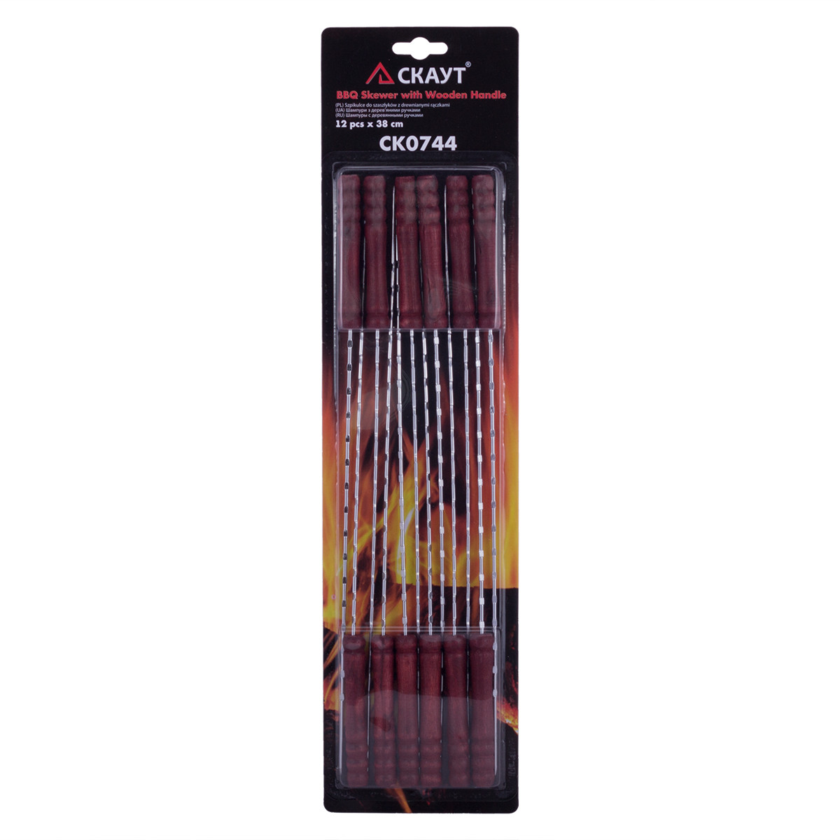 Шампуры 12 шт с деревянной ручкой скаут 0744 (38х0,25 см)