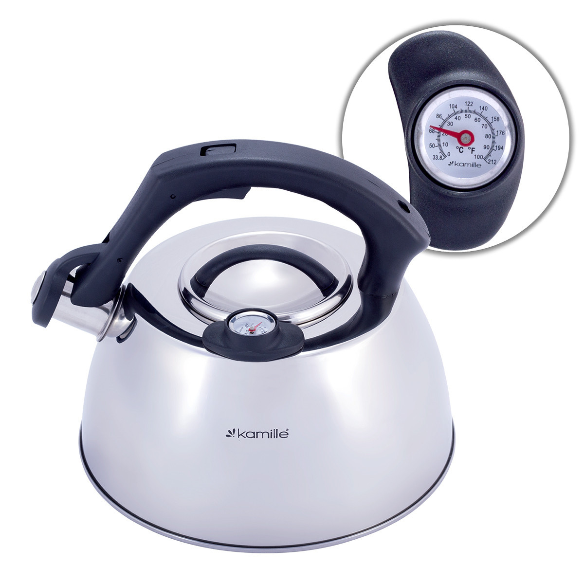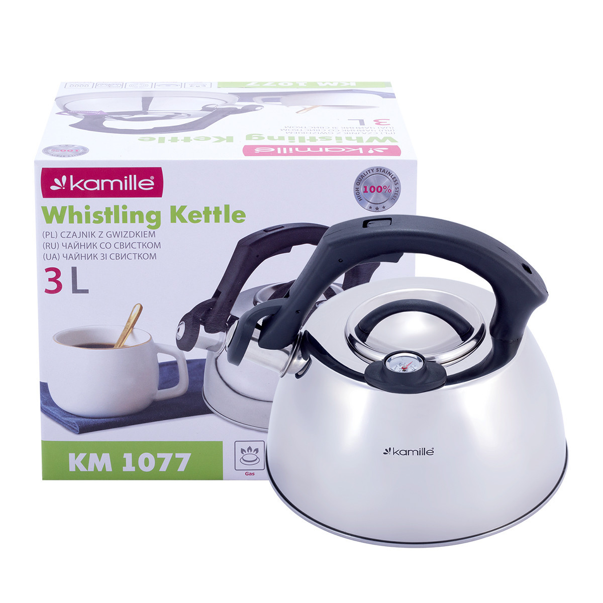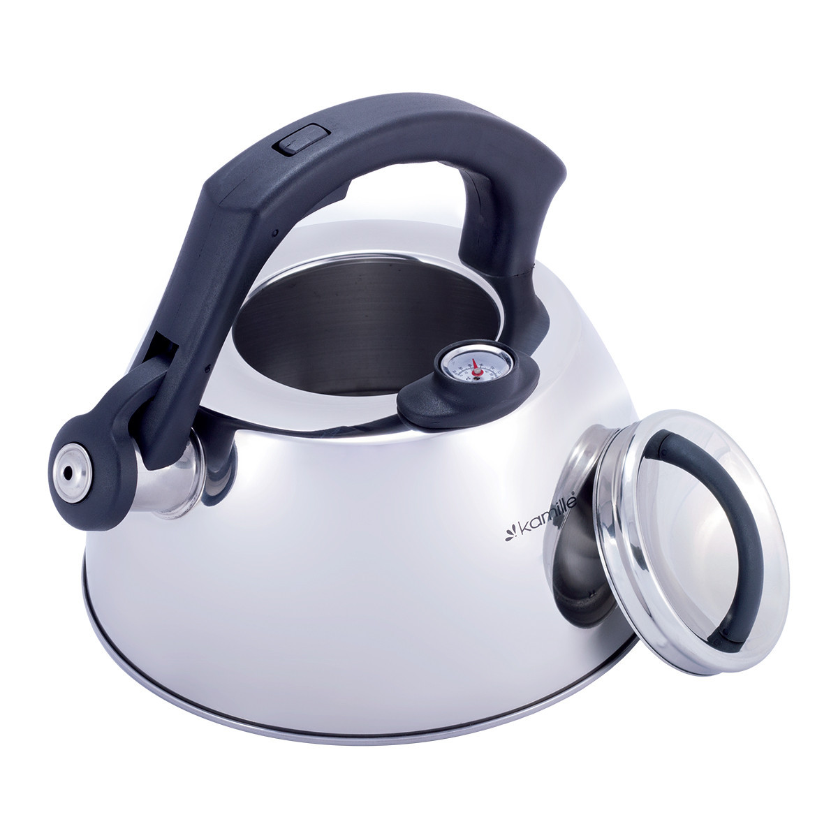 Чайник Kamille 3л из нержавеющей стали со свистком и термометром для индук